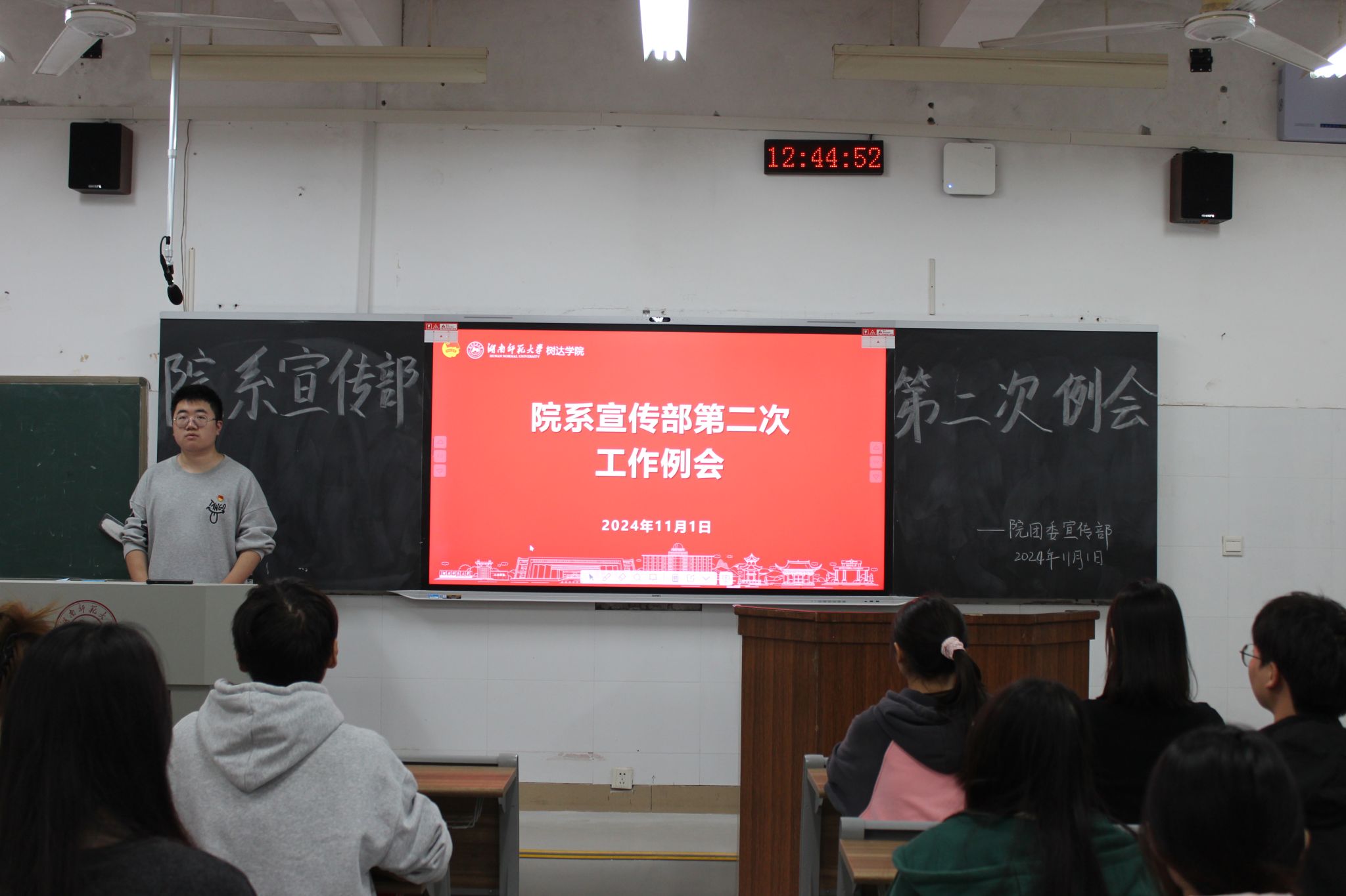 (通讯员 李锦文 赵晶晶 周劲翔)11月1日中午,公司团委宣传部在树达楼104教室召开本学期院系第二次工作例会。会议由院团委宣传部部长李锦文主持。