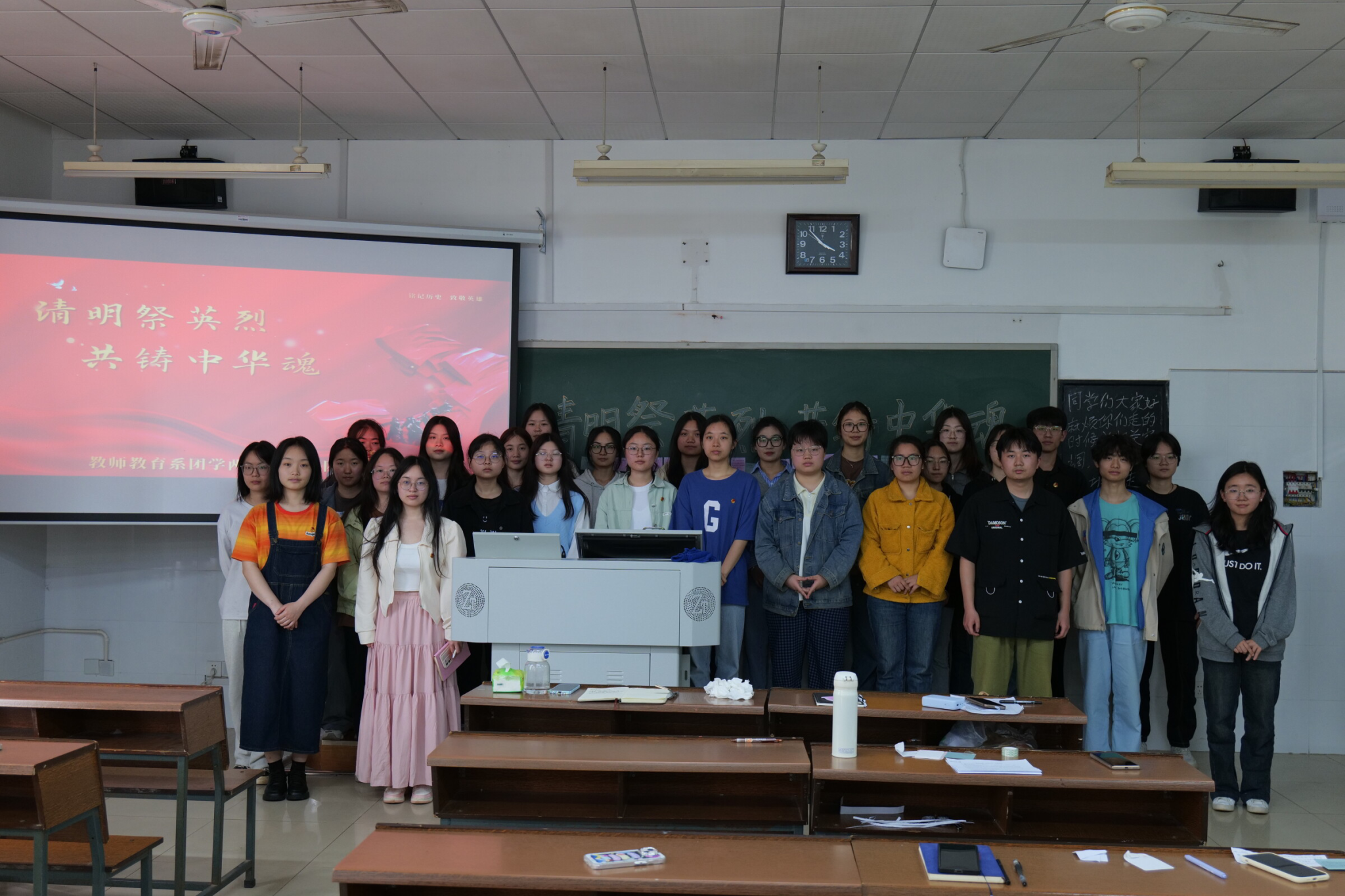 (记者 陈欣玉 张铠 李皖湘)4月18日中午,公司教师教育系团学两会于达善楼101教室开展以“清明祭英烈,共铸中华魂”为主题的团日活动。活动由组织部副部长鄢颖、彭青禾主持。