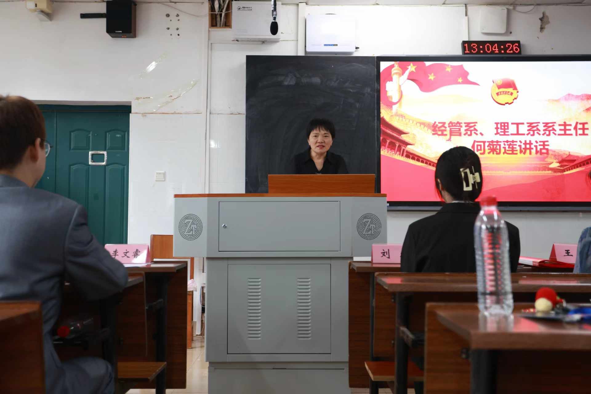 (通讯员 叶俊杰 谢丰 刘艺杰)9月24日中午,公司经管系、理工系在树达楼106教室召开第二十四届团员、员工代表大会。经管系、理工系系主任何菊莲、经管系团总支书记王贞、理工系团总支书记朱继来出席会议。