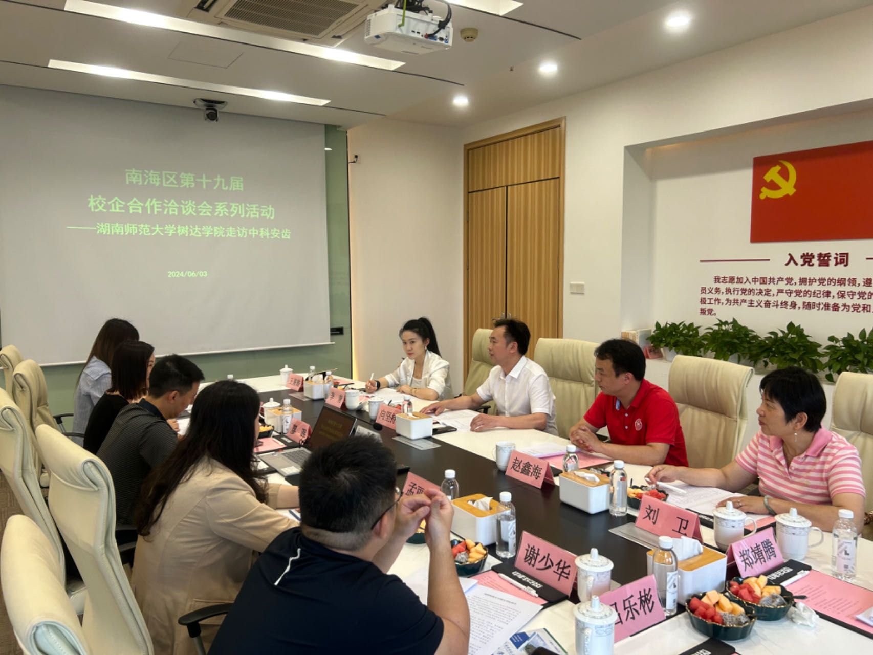 向坚持一行先后走访了佛山壹佰建设集团有限公司、佛山金竹建设有限公司、江华金竹文化旅游开发有限公司、佛山市南海区人社局、广东中科安齿生物科技有限公司、招商银行佛山三水支行等企业。