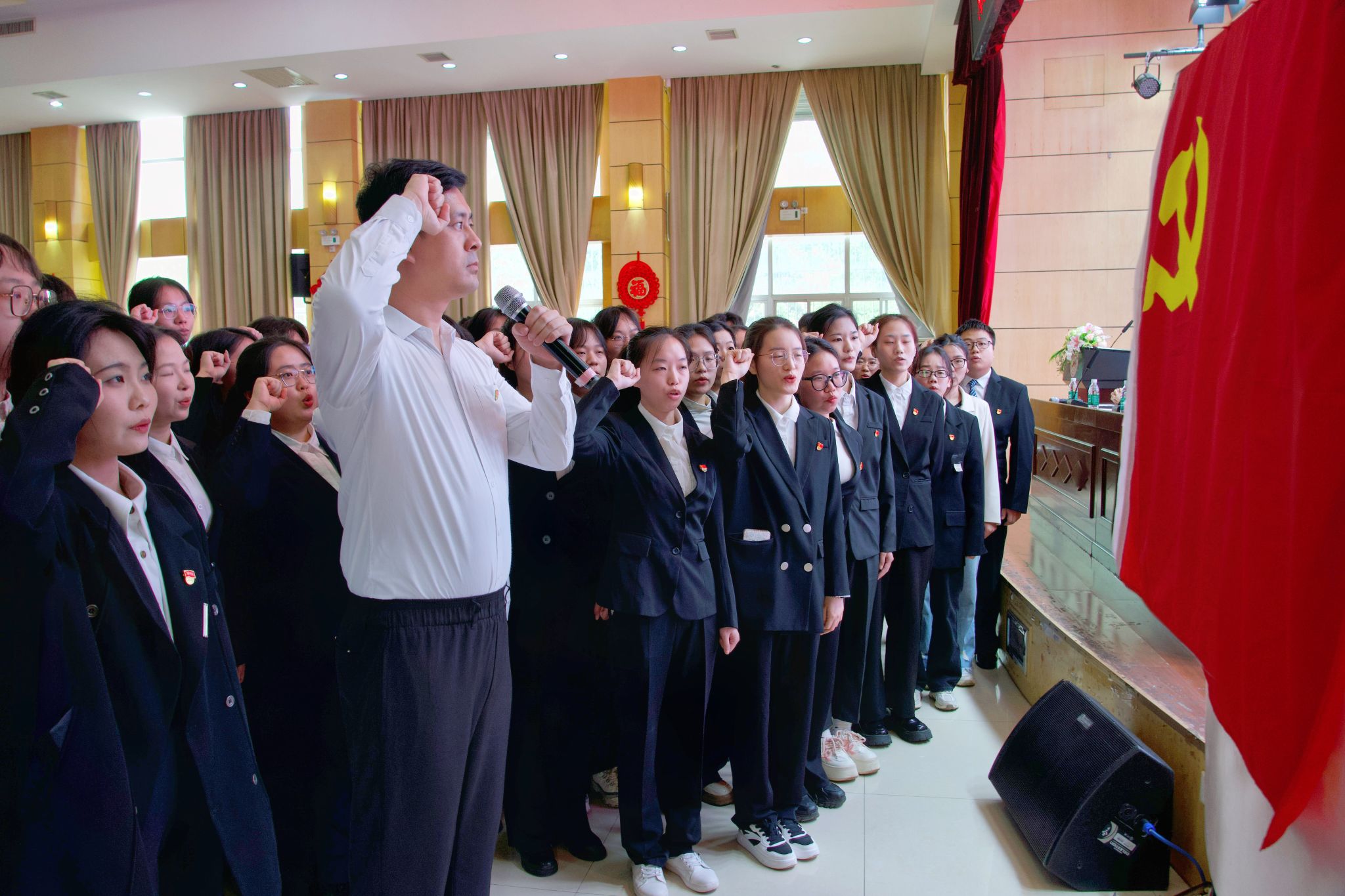 (记者 汤心仪 胡穂源 刘奕兰)4月25日中午,公司在树达楼113报告厅举行第76期入党积极分子培训班开学典礼暨新党员入党宣誓。院专职组织员曾南雁出席典礼。