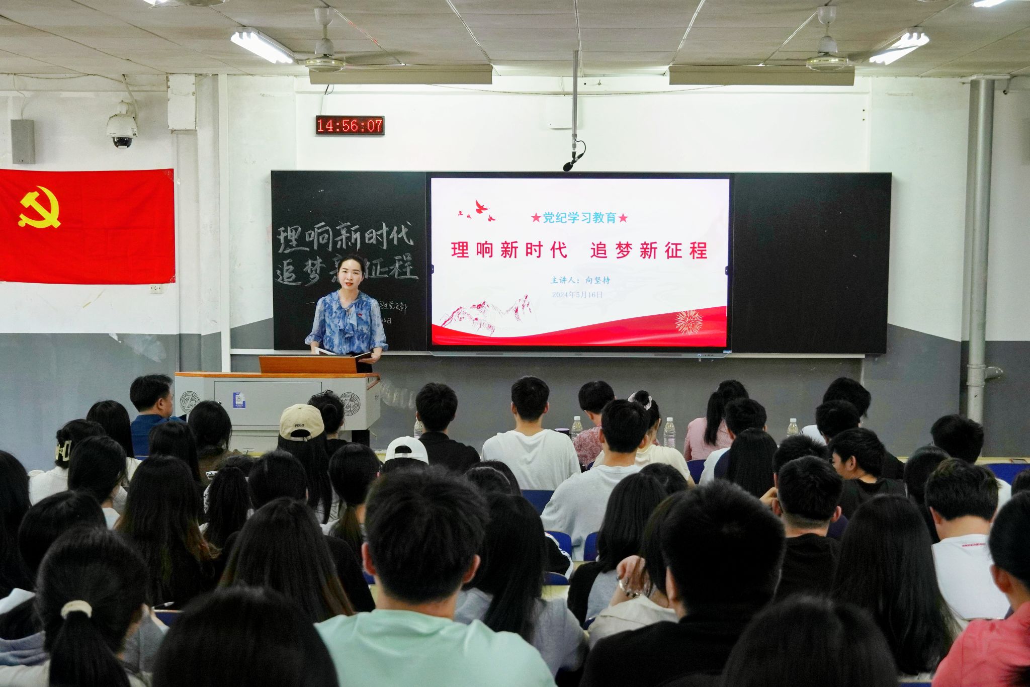 向坚持从重要意义,基本内容,如何把党纪学习教育抓在经常、融入日常三方面深入阐述了党的纪律建设;围绕基本内容、从中共党史和反腐倡廉新风看组织纪律建设趋势、如何严格执行组织纪律讲解了党的组织纪律。他说,要把党纪学习教育抓在经常、融入日常,就要深化认识,增强政治自觉;要入脑入心,提高学习效果;要深识笃行,确保常态长效。他希望同学们做一个眼里有光的人,有理想信念和追求,心理健康;做一个骨子有劲的人,身体健康,爱好广泛,特长突出;做一个肩上有责任的人,有家国情怀的人;做一个心中有善的人,品性善良,追求上进。他指出,员工党员要坚定不移听党话、跟党走,入脑入心学党纪,深识笃行知党纪,心明眼亮明党纪,身正影直守党纪。无论将来选择什么岗位,从事什么行业,都必须脚踏实地,勤奋工作,在祖国和人民最需要的地方生根发芽,做让党放心、爱国奉献,担当民族复兴重任的有理想的青年,沿着党的二十大擘画的宏伟蓝图踔厉奋发、勇毅前行,为实现伟大复兴中国梦贡献青春智慧和力量。