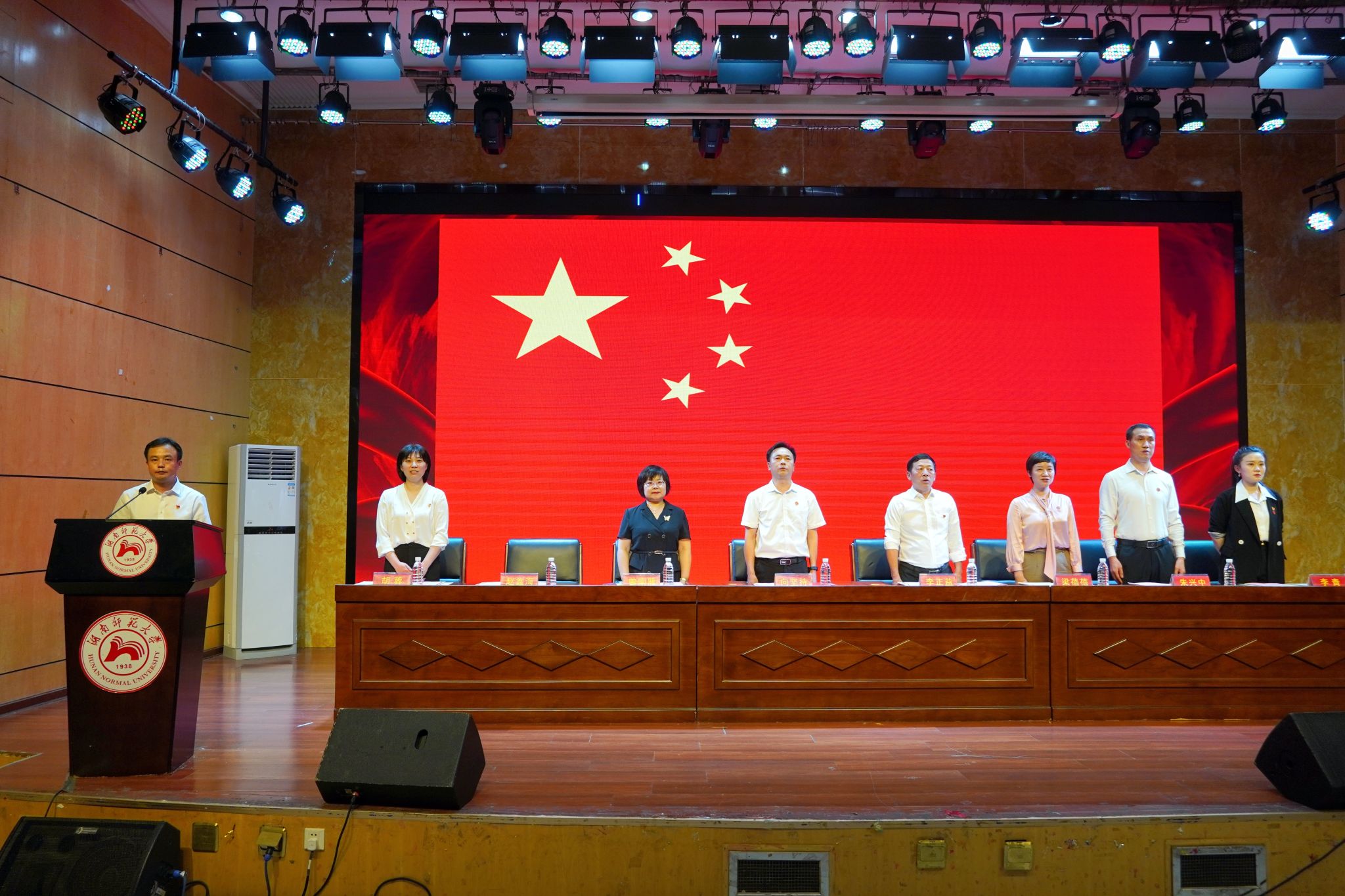 大会在庄严的国歌声中拉开序幕。