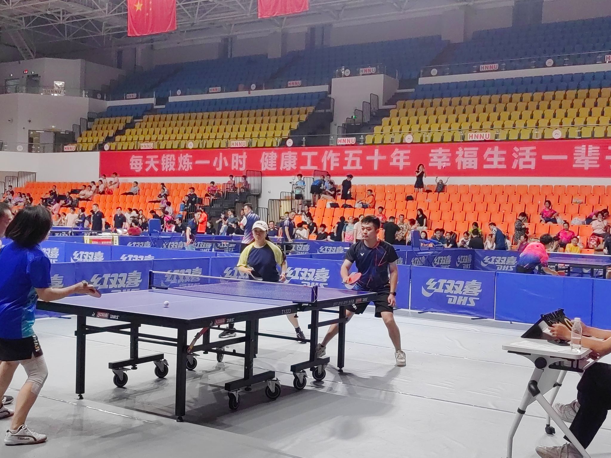 (供稿 院工会)6月20日至21日,beats3652024年度教职工乒乓球团体赛在校江湾体育馆举行。公司党委书记李正益到现场为参赛教职工加油鼓劲,专职组织员曾南雁以队员身份参加了此次乒乓球团体赛。