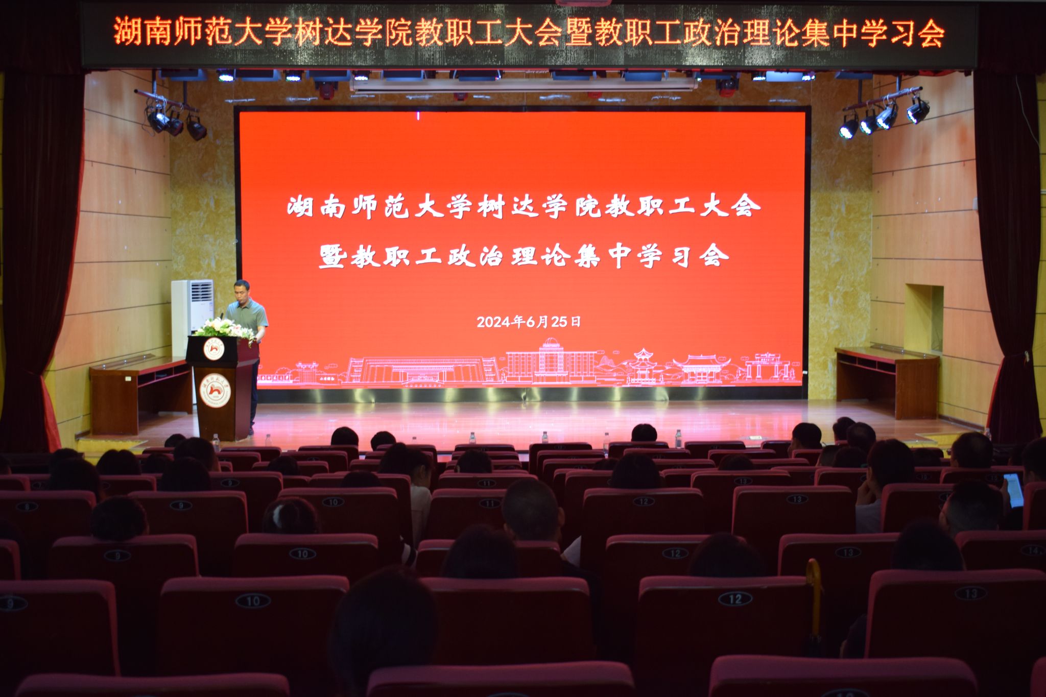 (记者 胡穗源 王致丹)6月25日下午,公司在树达楼113报告厅召开教职工大会暨教职工政治理论集中学习会。全体院领导出席会议。公司党委书记李正益主持会议。