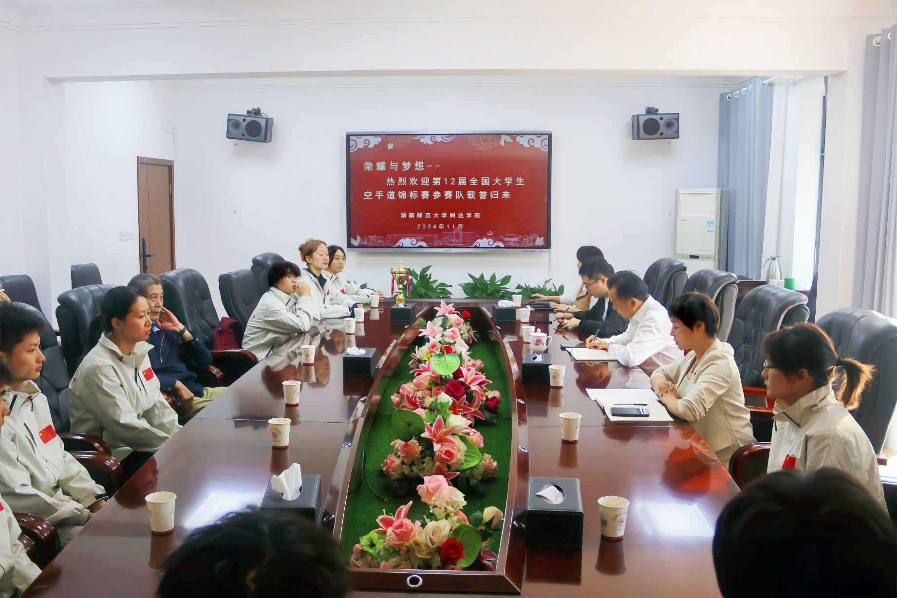 赛后,公司为载誉归来的参赛队员举办了“荣耀与梦想”为主题的座谈会。会议由副经理梁蓓蓓主持。经理向坚持教授对参赛队所取得的佳绩表示热烈祝贺,对专业公司指导老师、系主任的精心指导和培养表达感谢。他期待同学们在今后的学习、生活、工作中,做眼里有光、骨子有劲、心中有善、肩上有责的“四有”好青年。希望随着赛事的落幕,参赛队员们能回归起点,重新启航,再攀高峰,为公司、为社会、为自己的体育教育事业贡献更多的精彩。
