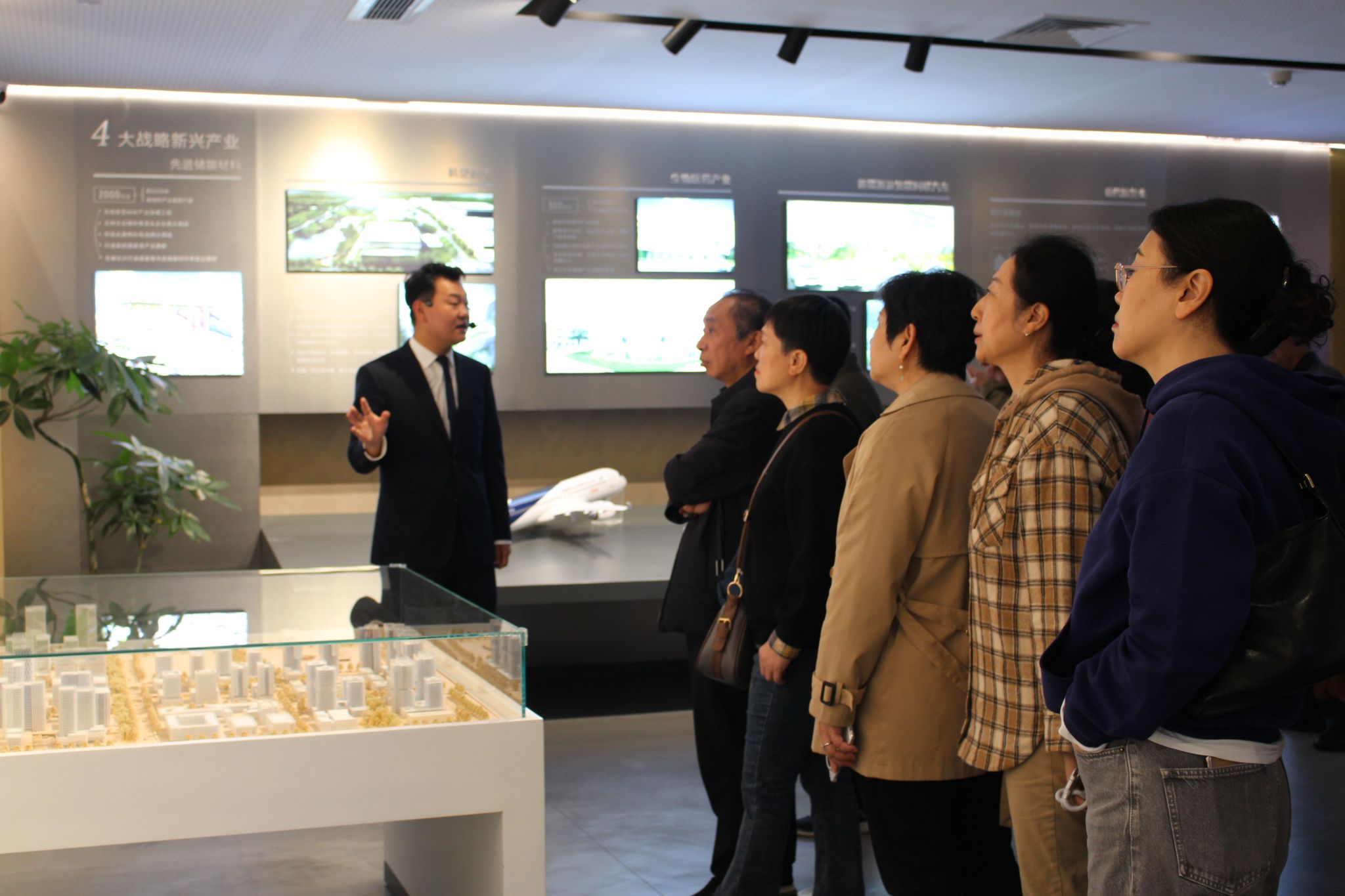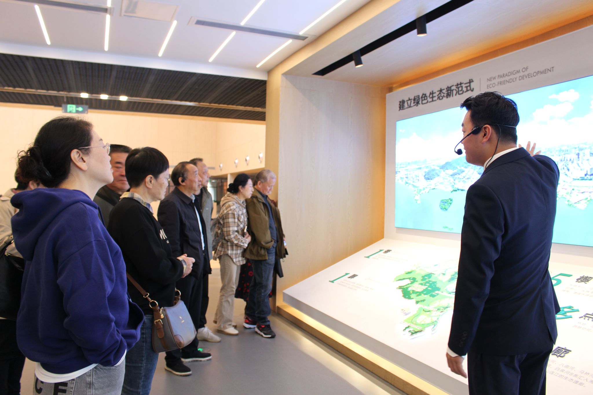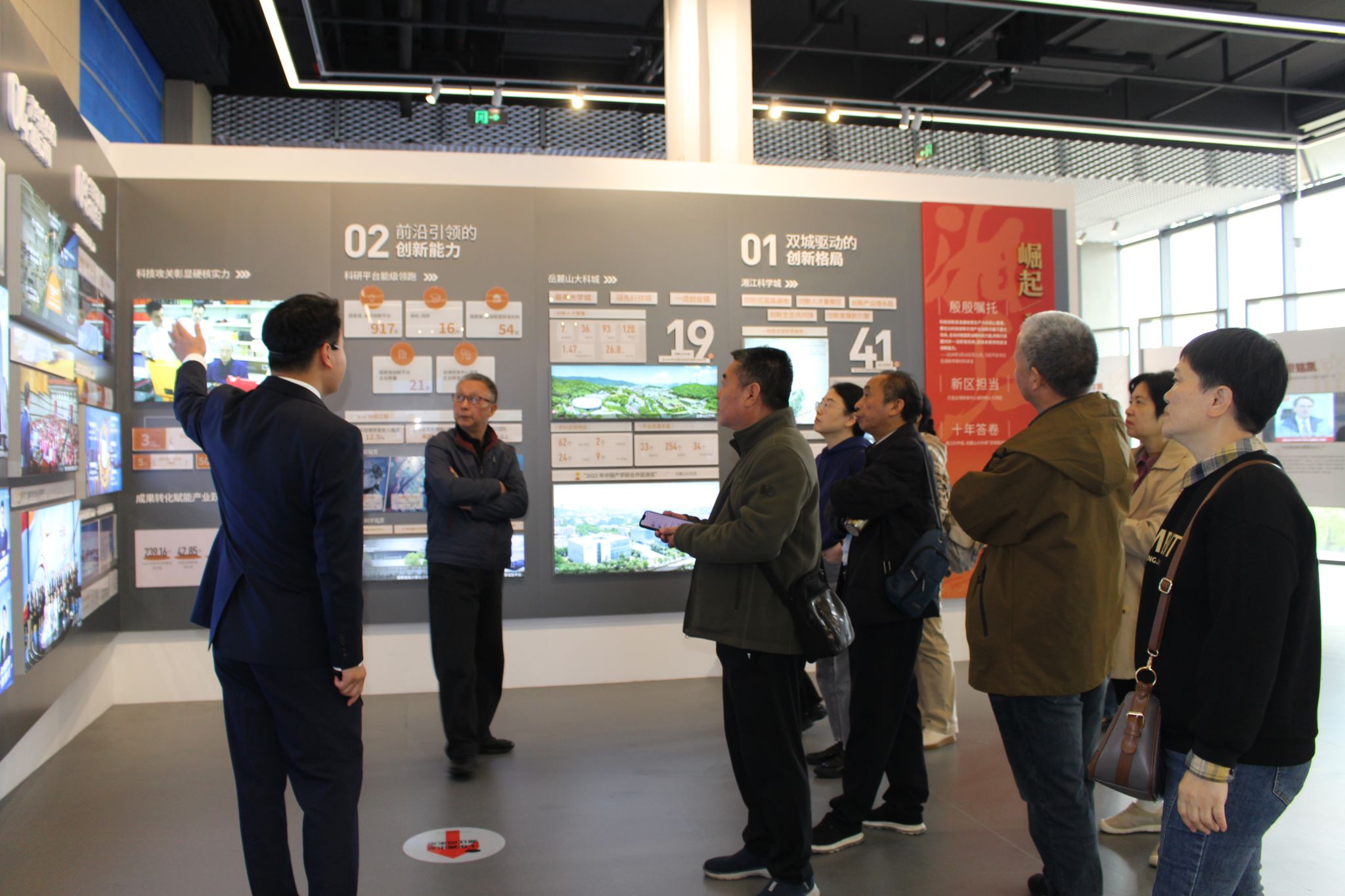 老同志们在讲解员的引导下走进这座现代化展馆。城市馆的建筑外观简约而富有现代感,内部设计则巧妙地将艺术与科技融为一体,分为建设成就展、发展规划展、“未来畅想”展三层,是展示湖南湘江新区发展蓝图的重要平台。老同志们不时驻足交流,对比今昔变迁,感慨时代进步。老同志们纷纷表示,通过此次活动见证了湘江新区砥砺奋进的辉煌成就,大家在感受发展、共享成果中提升了幸福感,更感受到了公司的关怀温暖。