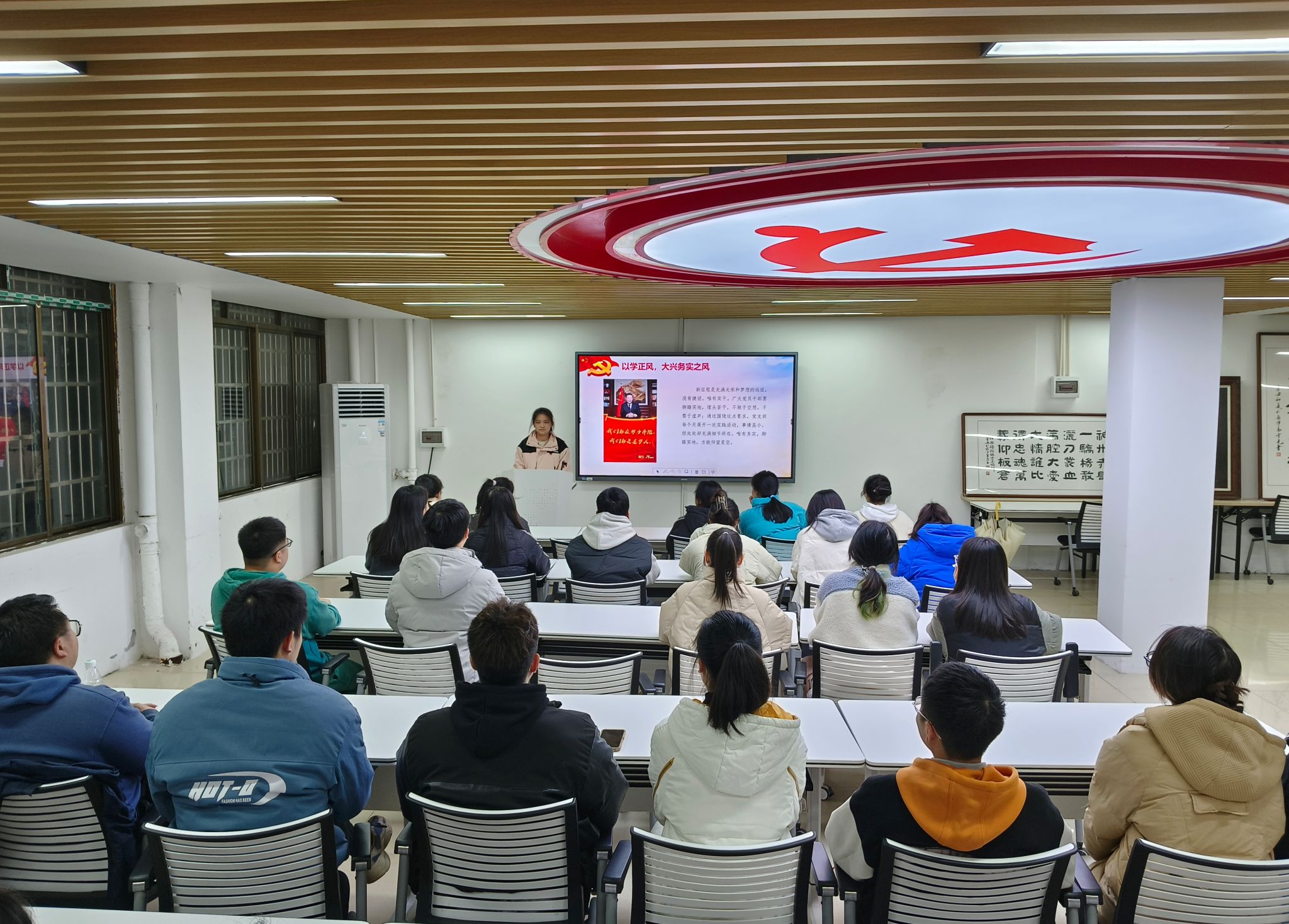 侯荣艳围绕新时代青年如何坚定理想信念、如何提升实践能力、如何大兴务实之风三个方面进行阐述。她表示,青年的成长发展事关党和国家的未来,师范生党员应主动加强磨砺,锤炼自身本领,自觉承担新时代赋予的光荣使命,坚定践行初心使命、提升自身综合能力的决心。