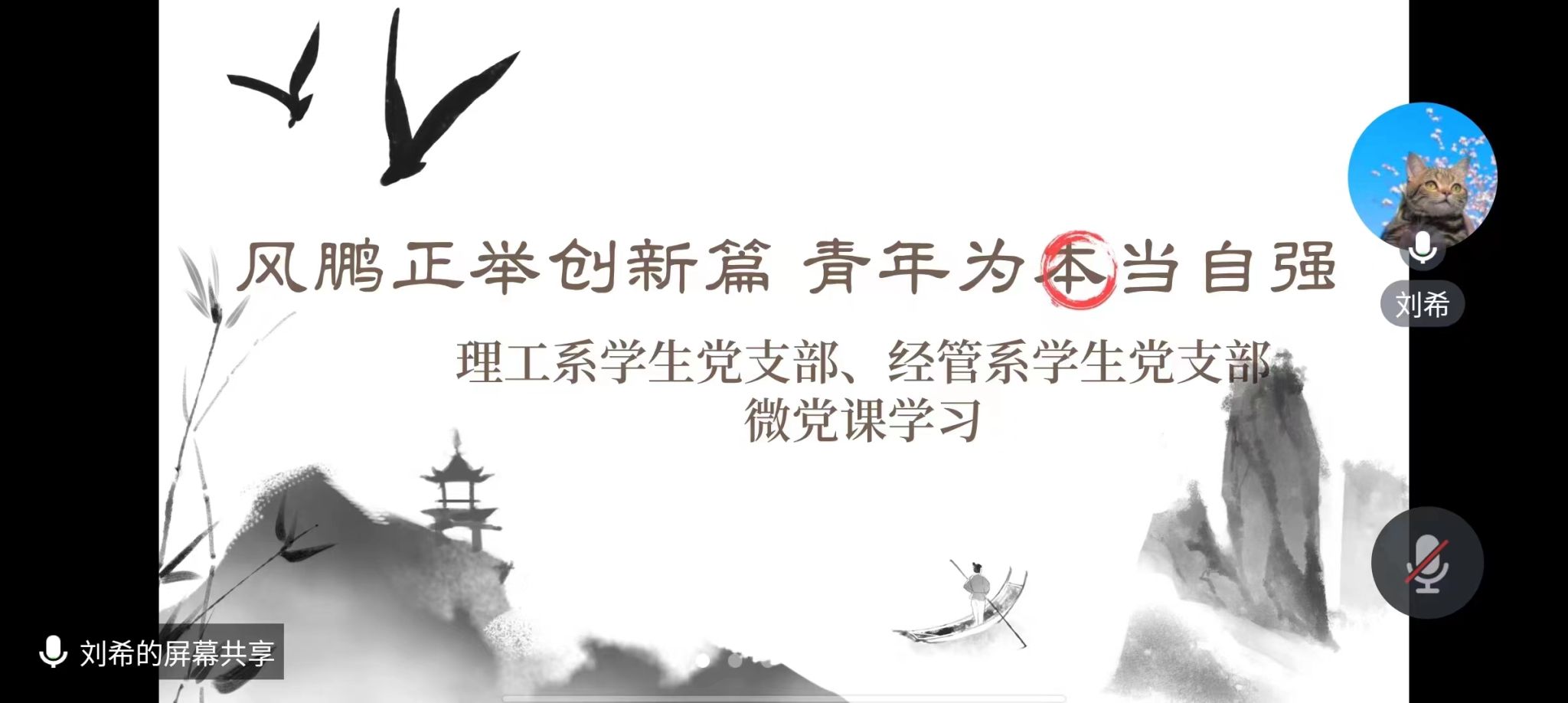 (记者 刘珂 罗娜 何缨)2月29日中午,公司经管系、理工系员工党支部开展以“风鹏正举创新篇,青年为本当自强”为主题的微党课。党课由理工系员工党支部成员罗娜主持。理工系员工党支部书记刘希担任主讲人。