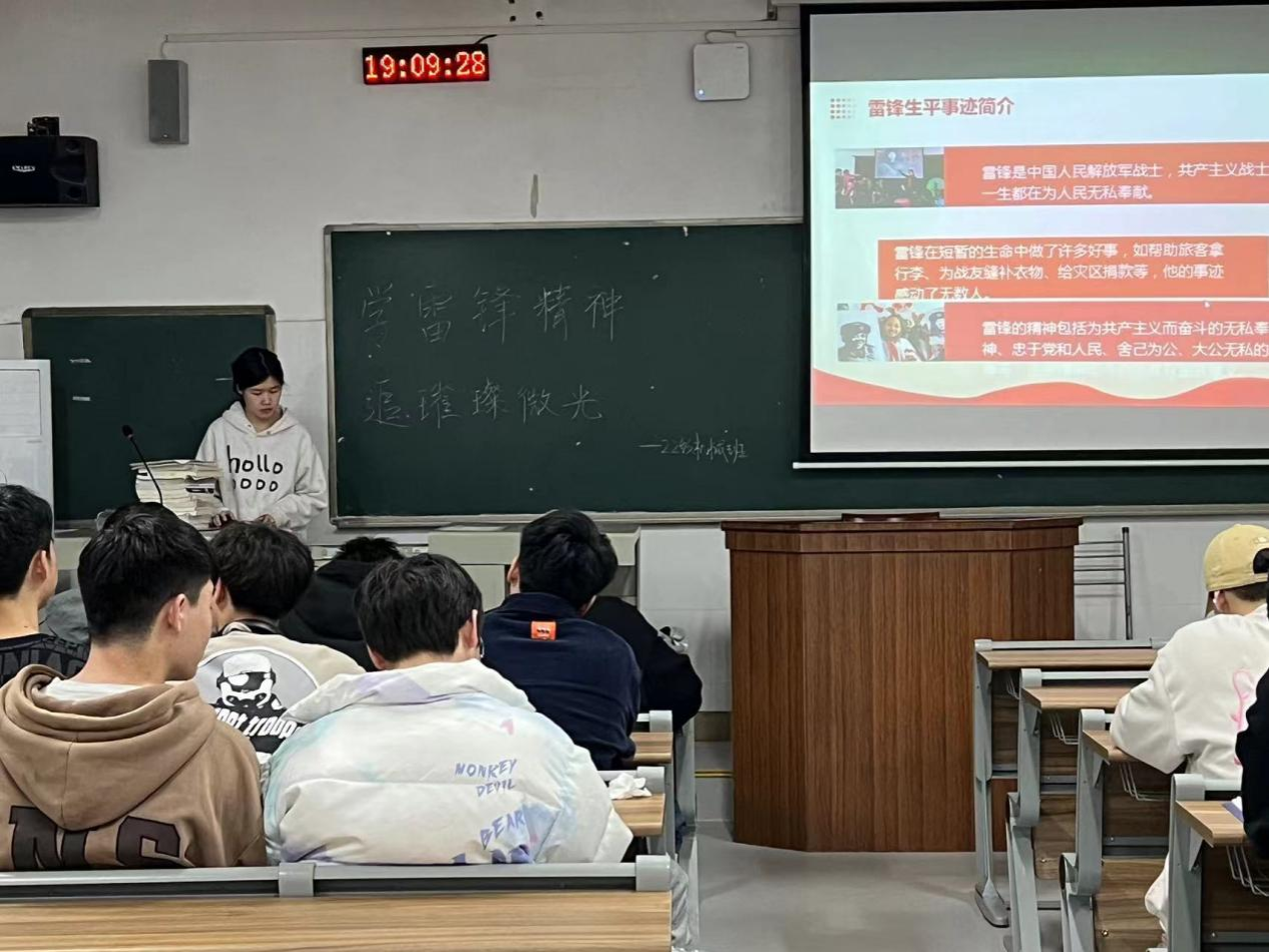 (记者 郑伊婷 邓宸御 刘艺杰)3月17日晚,公司理工系2022级机械设计制造及其自动化专业在树达楼109教室开展以“学雷锋精神,追璀璨微光”为主题的团日活动。活动由团支部书记李嘉慧主持。