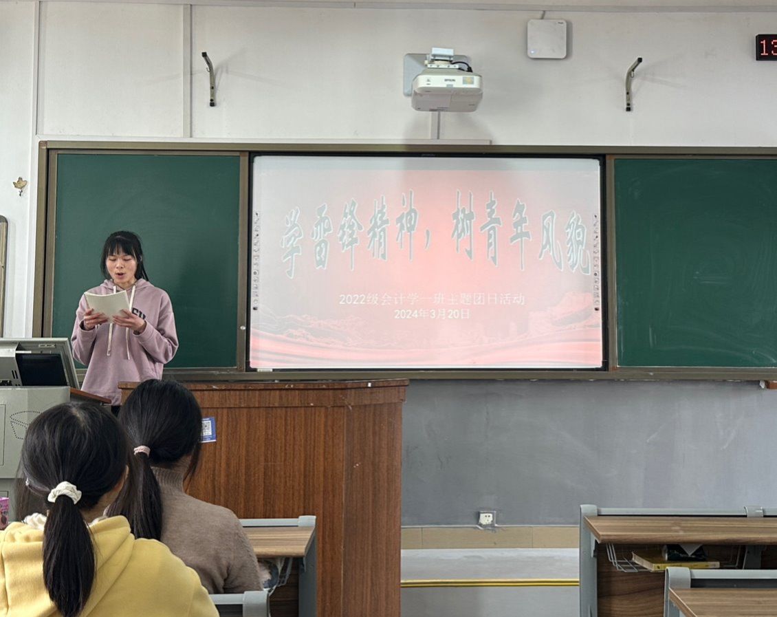 (记者 李伊佳 吴雨霏 粟思瑾)3月20日下午,公司经管系2022级会计学专业于树达楼404教室开展以“学雷锋精神,树青年风貌”为主题的团日活动。活动由学习委员蒋燕珍主持。