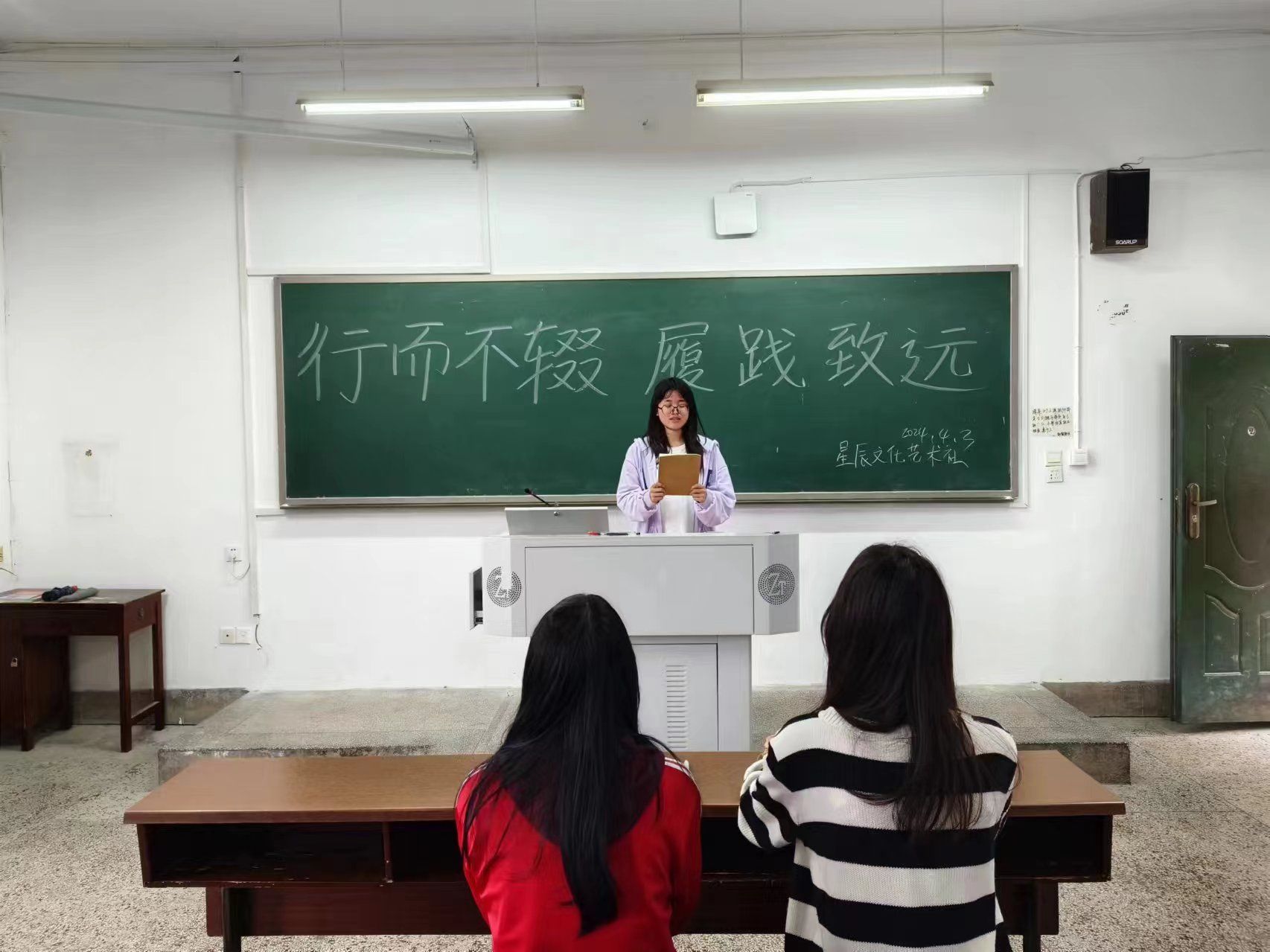 (记者 李博书 肖熙 赵丙阳)4月3日中午,公司星辰文化艺术社张公岭分中心理事会在张公岭校区教学楼107教室召开以“行而不辍,履践致远”为主题的例会。会议由星辰文化艺术社张公岭分中心负责人蒋雯君主持。
