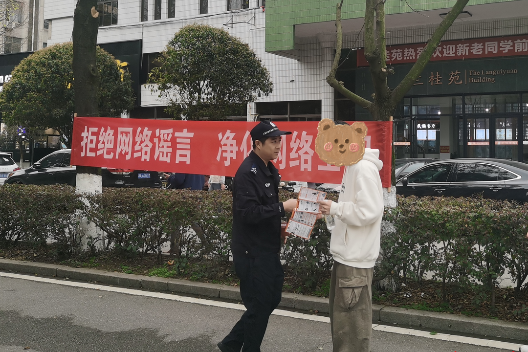 宣讲活动中,咸嘉湖派出所所长邹菡以“网络安全,你我共建”为主题,就打击整治网络谣言、抵制网络暴力、共建清朗网络空间等方面开展法制教育,紧密结合校园实际情况,采取发放宣传资料、悬挂宣传标语、微信朋友圈转发等方式将识谣、辨谣、防谣的知识送到群众手中,呼吁大家在网络交流、发表言论、发布视频时,自觉抵制和积极举报各种网络不文明行为,努力做到“不信谣、不传谣、不造谣”。
