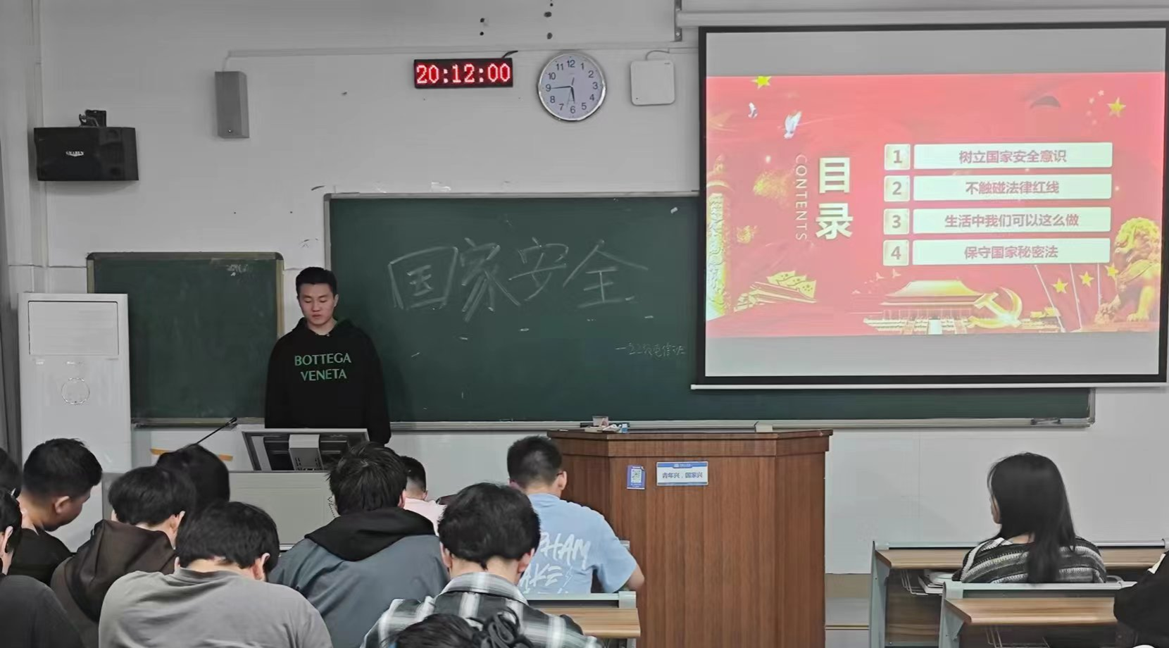 (记者 叶俊杰 胡洋 王俊峰)4月11月晚,公司理工系2022级电子信息科学与技术专业在树达楼108教室召开国家安全主题班会。活动由安全委员康样主持。
