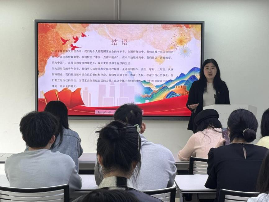 (记者 周慧 熊贝贝 李佳怡)4月19日中午,公司文法系员工第二党支部在党员之家开展以“宣传国家安全教育日”为主题的微党课。文法系员工第二党支部第一书记彭娇出席微党课。会议由文法系员工第二党支部组织委员陈盼担任微党课的主讲人。