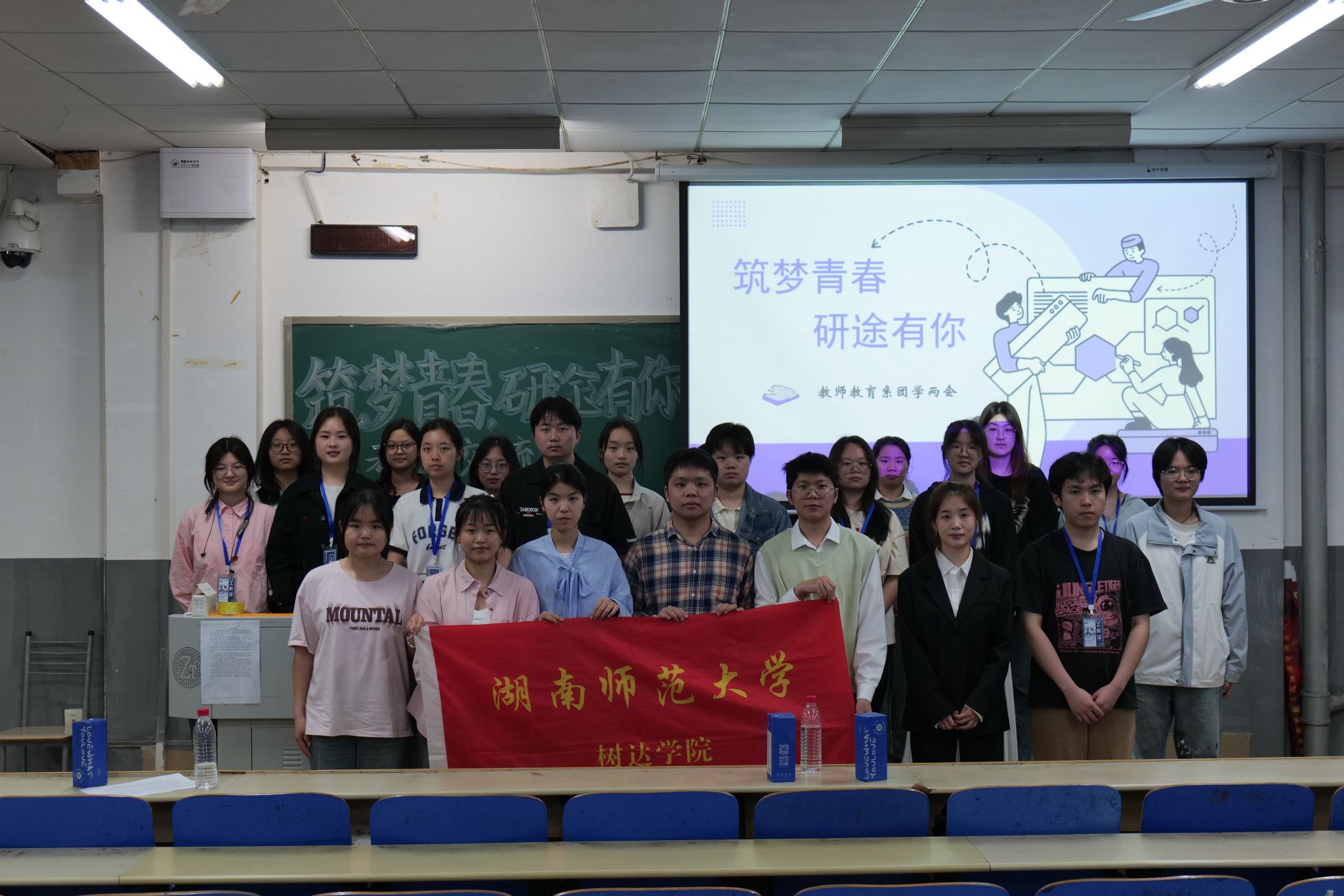 (记者 李皖湘 陈欣玉 张铠)4月22日晚,公司教师教育系于树达楼315教室开展以“筑梦青春,研途有你”为主题的考研交流会。2020级数学与应用数学专业二班王璐、2020级历史学专业一班李涛、2020级思想政治教育专业一班宋锦玲、2020级物理学专业一班雷帆、2020级生物科学专业一班程晓芯担任主讲人。会议由学业发展部成员贺思宇主持。