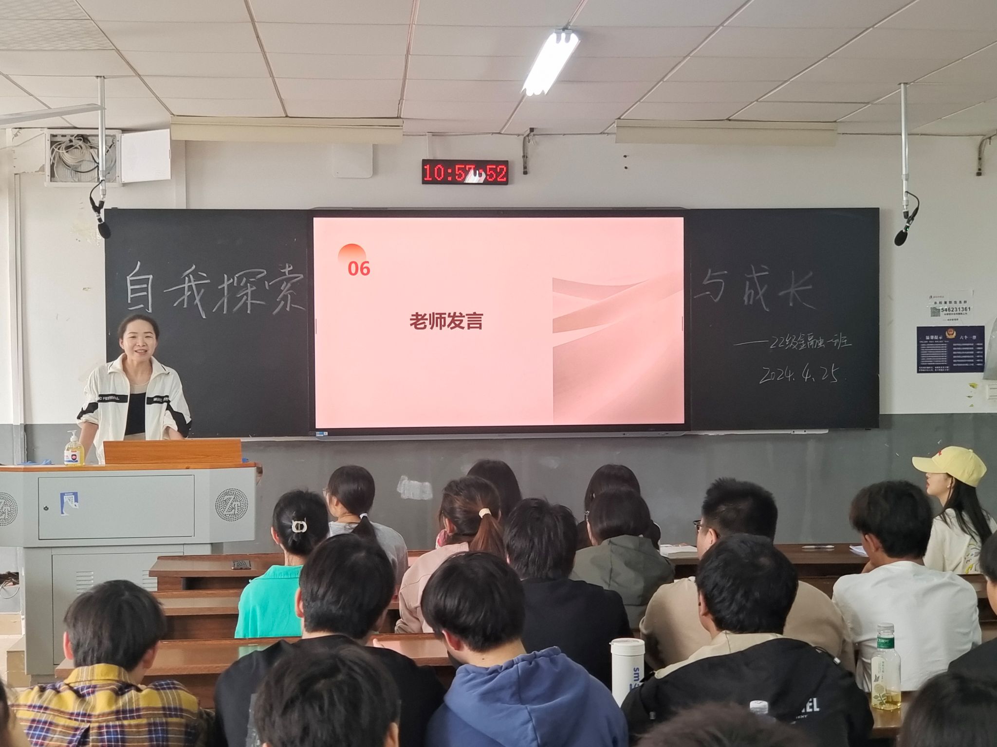 (记者 刘艺杰)4月25日上午,公司经管系2022级金融学专业在树达楼406教室开展以“自我探索与成长”为主题的班会。经管系团总支书记王贞、2020级金融学专业李木出席会议。会议由学习委员杨文慧、心理委员石香玉主持。