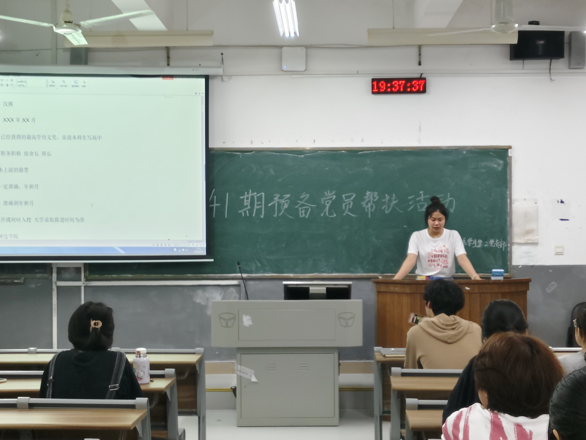 (记者 彭乔 曾鑫 尹榴婷)4月27日晚,公司教师教育系员工第二党支部第41期预备党员与76期入党积极分子在树达楼204教室联合开展“一帮一”帮扶活动。活动由第41期预备党员第二组组长彭乔主持。