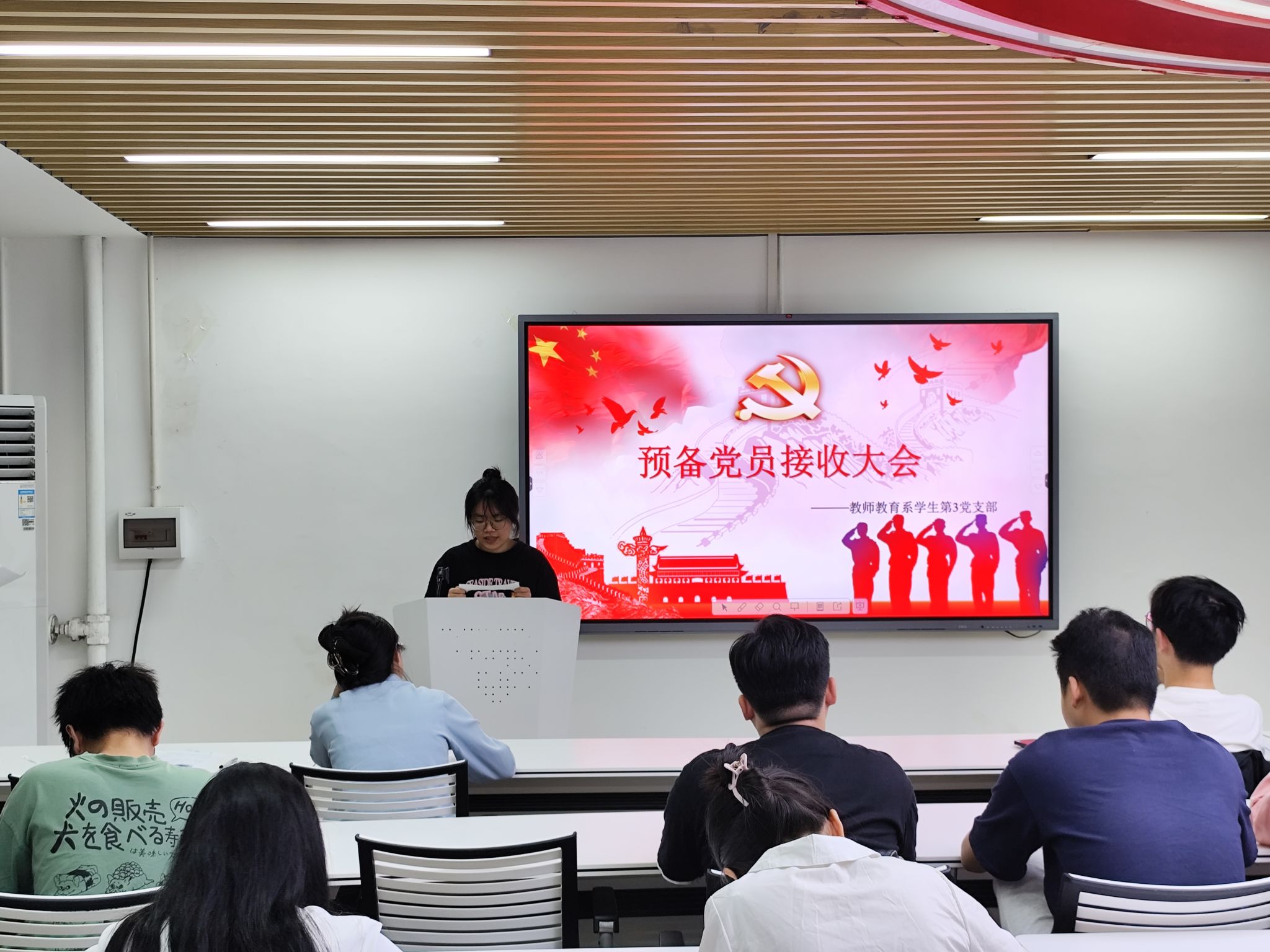 (记者 周香 唐念祖 唐杰)5月17日中午,公司教师教育系员工第三党支部在党员之家召开党员大会,讨论接收王思梅等9名发展对象为预备党员的事项。教师教育系员工第三党支部第一书记孙一心出席会议。会议由教师教育系员工第三党支部书记侯荣艳主持。