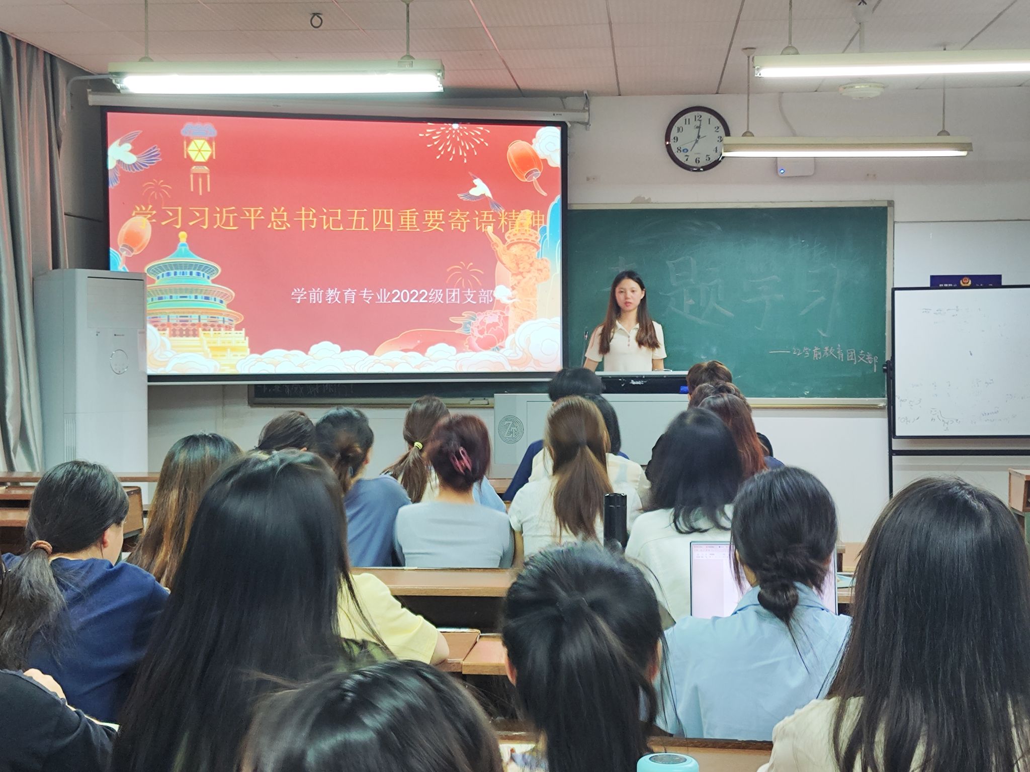 (记者 谭亚 王倩 刘诗雨) 5月19日晚,公司教师教育系2022级学前教育专业一班于达善楼205教室开展以“习近平总书记五四重要讲话精神”为主题的专题学习活动。活动由团支部书记王倩主持。