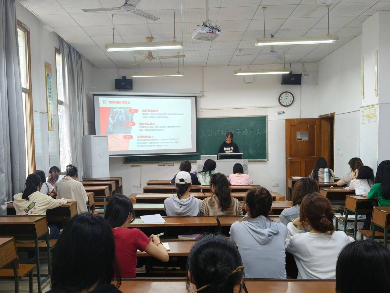 李茹分别就入团积极分子培训背景、思想政治素质提升途径、团组织生活制度及规范介绍三个方面展开阐述。她表示,在面临新形势新挑战时,入团积极分子们是团员队伍的后备力量,应当发挥模范带头作用,希望大家能坚定理想信念,培养良好的道德修养,加强对团务知识的学习,提升政治素养,培养团队意识,提高综合能力。