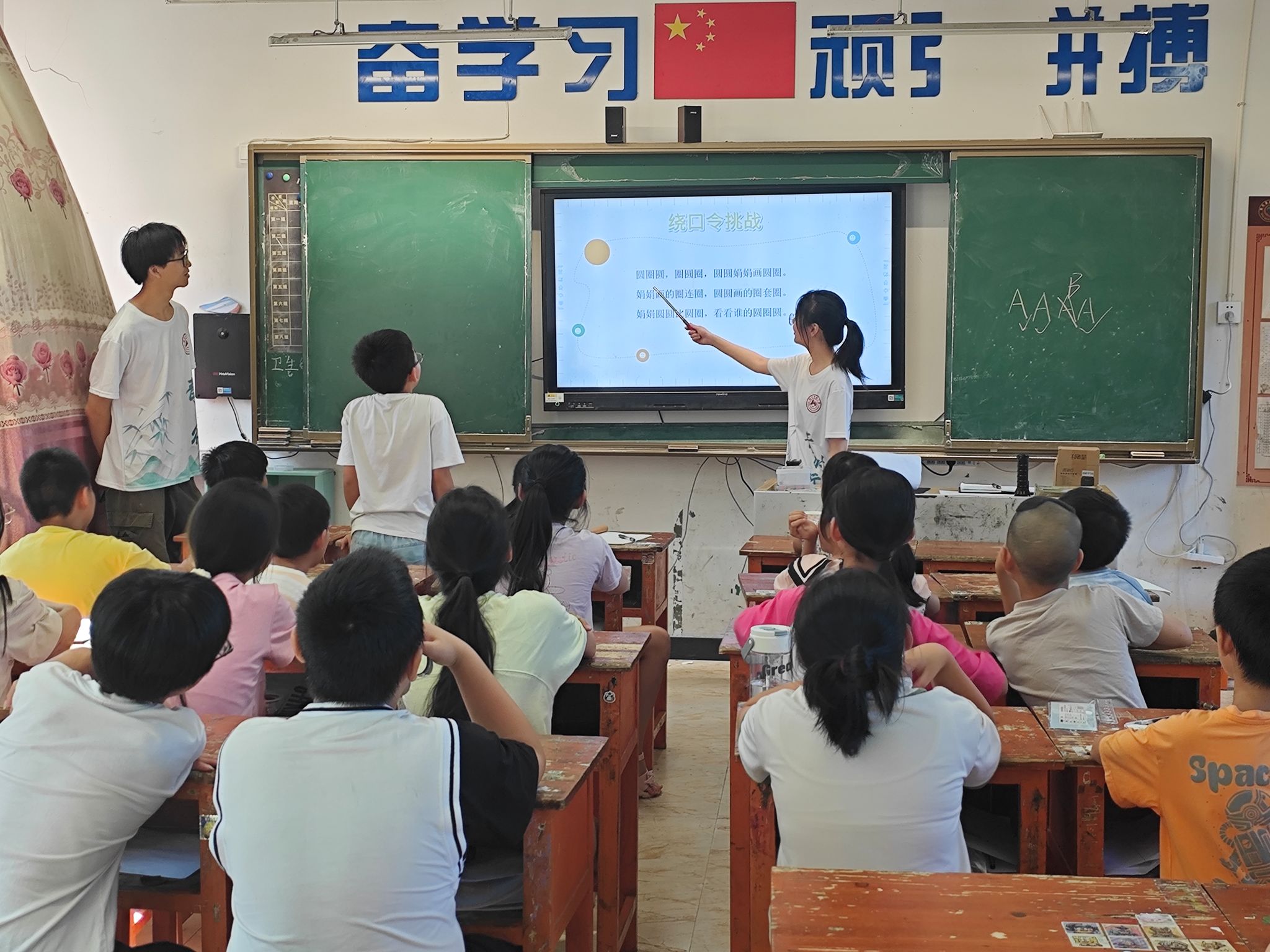 (记者 邹韵霖 蒋婷婷 刘艺杰)7月8日上午,公司经管系、理工系三下乡“青树行”暑期社会实践团在四都中学开设普通话特色课程。宣传组组员伍扬担任主讲人。