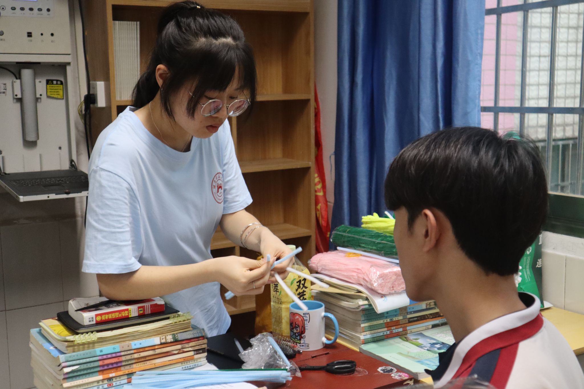 (记者 郭冰冰 刘婉婷 李曼)7月12日上午,公司文法系三下乡暑期社会实践团在衡阳县第三中学高一年级2301班开展书法、漆扇制作及扭扭棒创意手工三大特色支教课程。