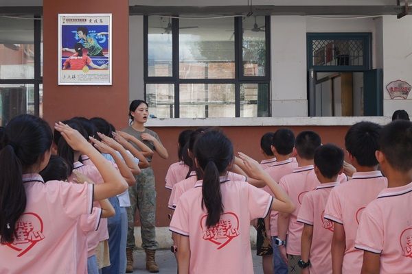 (记者 许骄杨 吴佳怡 肖熙)7月15日下午,公司教师教育系“星火筑梦”暑期社会实践团在良田公司星辰班开展军训课。文娱组退役老员工士兵王银婧担任教官。