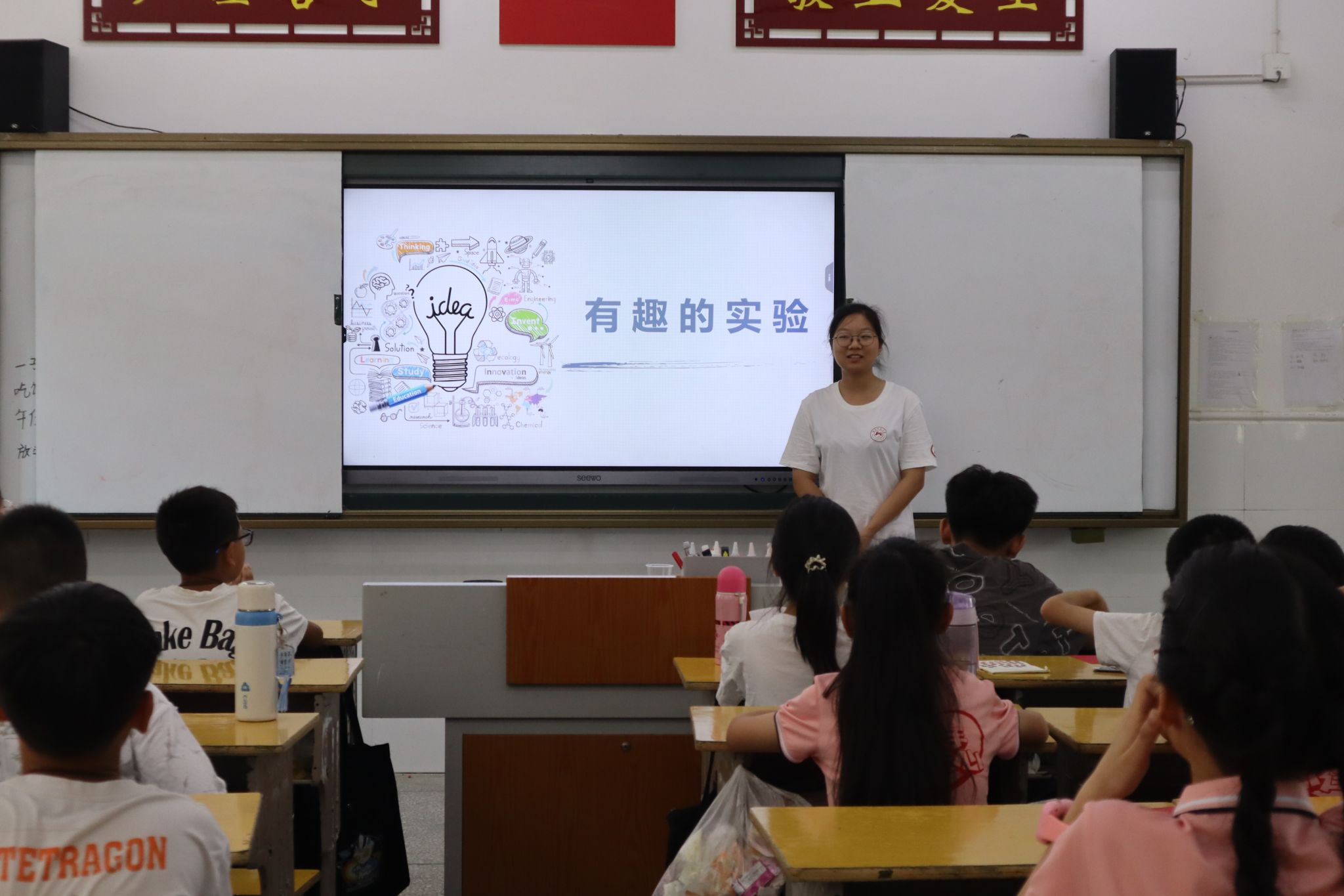 (记者 胡超凡 吴佳怡 许骄杨)7月20日上午,公司教师教育系 “星火筑梦”队在郴州市苏仙区良田镇良田公司开设趣味实验课堂。支教组成员张多轩担任主讲人。