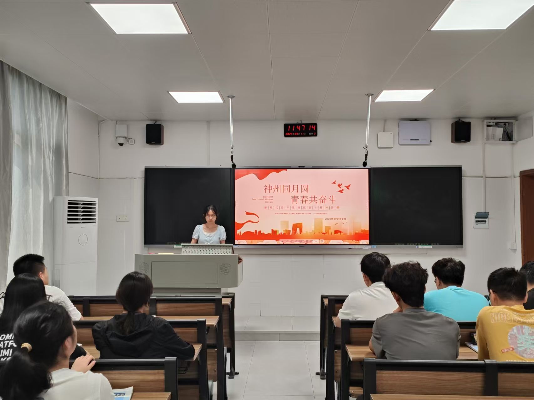 周香讲解了中秋节的历史背景、传统文化的底蕴内涵和青年如何锤炼意志品格三方面内容。