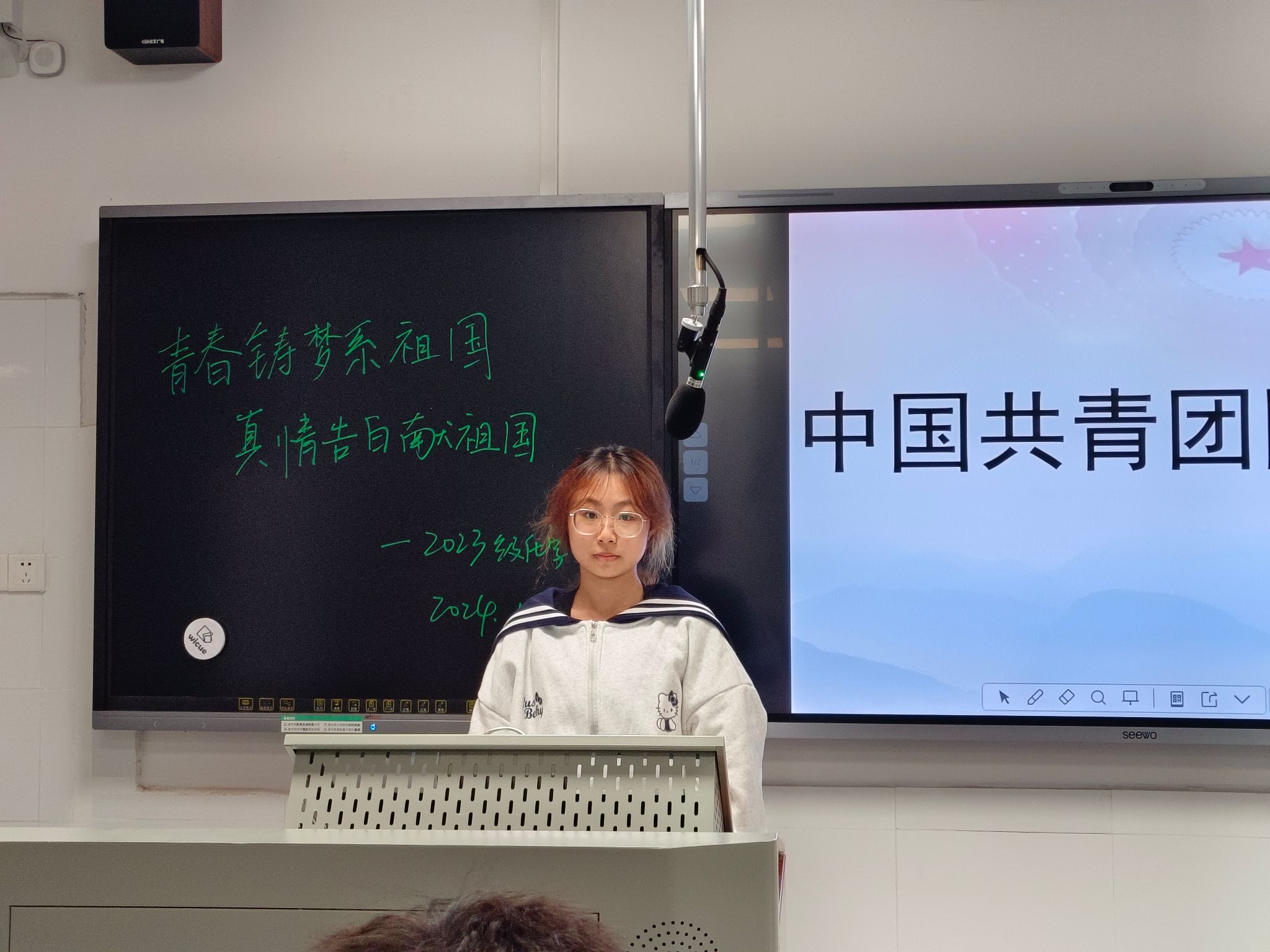 (通讯员 李自雄 夏章稳 舒欢)10月14日晚上,公司教师教育系2023级化学专业一班团支部于第一教学楼207教室开展“青春筑梦系祖国,真情告白献祖国”为主题的团日活动。
