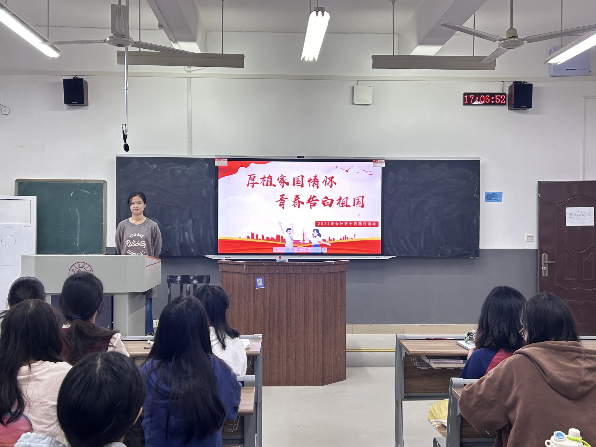 (通讯员 粟思瑾 李伊佳 刘媛媛)10月14日下午,公司经管系2022级会计学团支部在树达楼404教室开展了以“厚植家国情怀,青春告白祖国”为主题的团日活动。活动由心理委员许文婷主持。