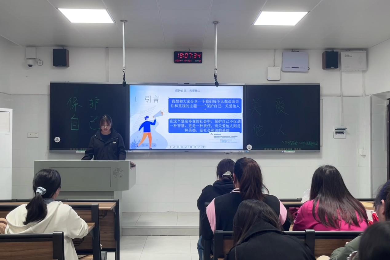 (通讯员 全奕 吴家曦 洪鹏志)10月20日晚,公司教师教育系2023级历史学专业二班于第一教学楼314教室开展“保护自己,关爱他人”主题班会。班会由安全委员周婷和心理委员杨芳怡主持。