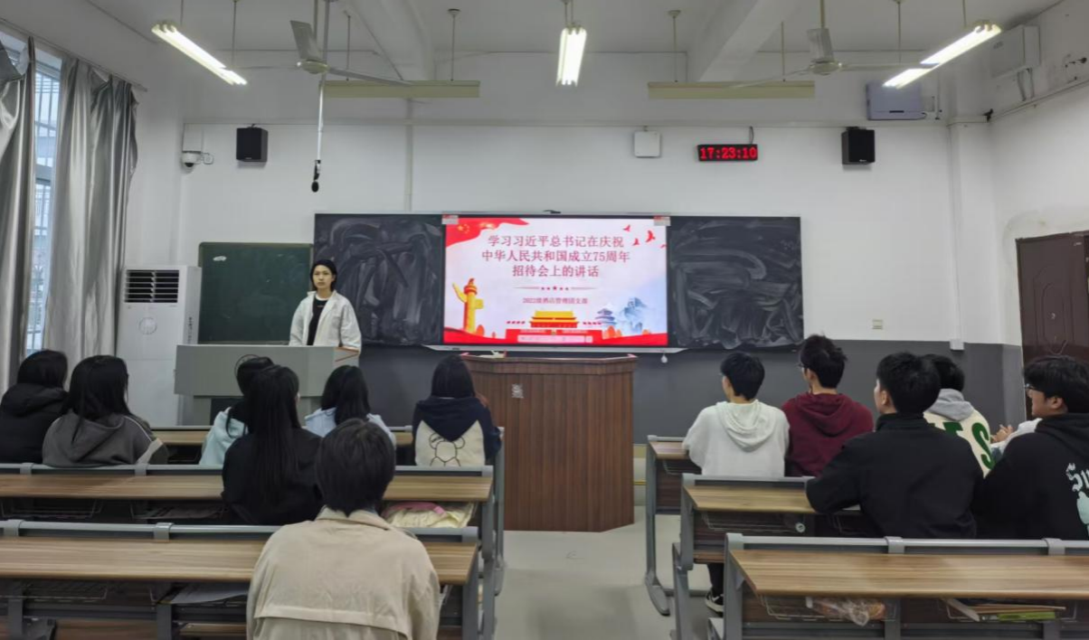 (通讯员 李世凤 王洁 叶俊杰)10月21日下午,公司经管系2022级酒店管理专业在树达楼405教室开展了以“学习习近平总书记在庆祝中华人民共和国成立75周年招待会上的讲话”为主题的团课活动。活动由团支部书记陈紫轩主持。