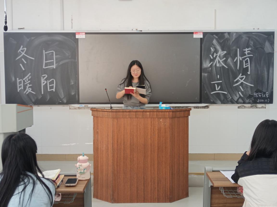 (通讯员 谢先璇 钱丽洁 何慧萍)11月7日中午,公司员工社团管理服务中心于树达楼105教室召开以“冬日暖阳,浓情立冬”为主题的例会。会议由公共事务部副部长吴海晨主持。
