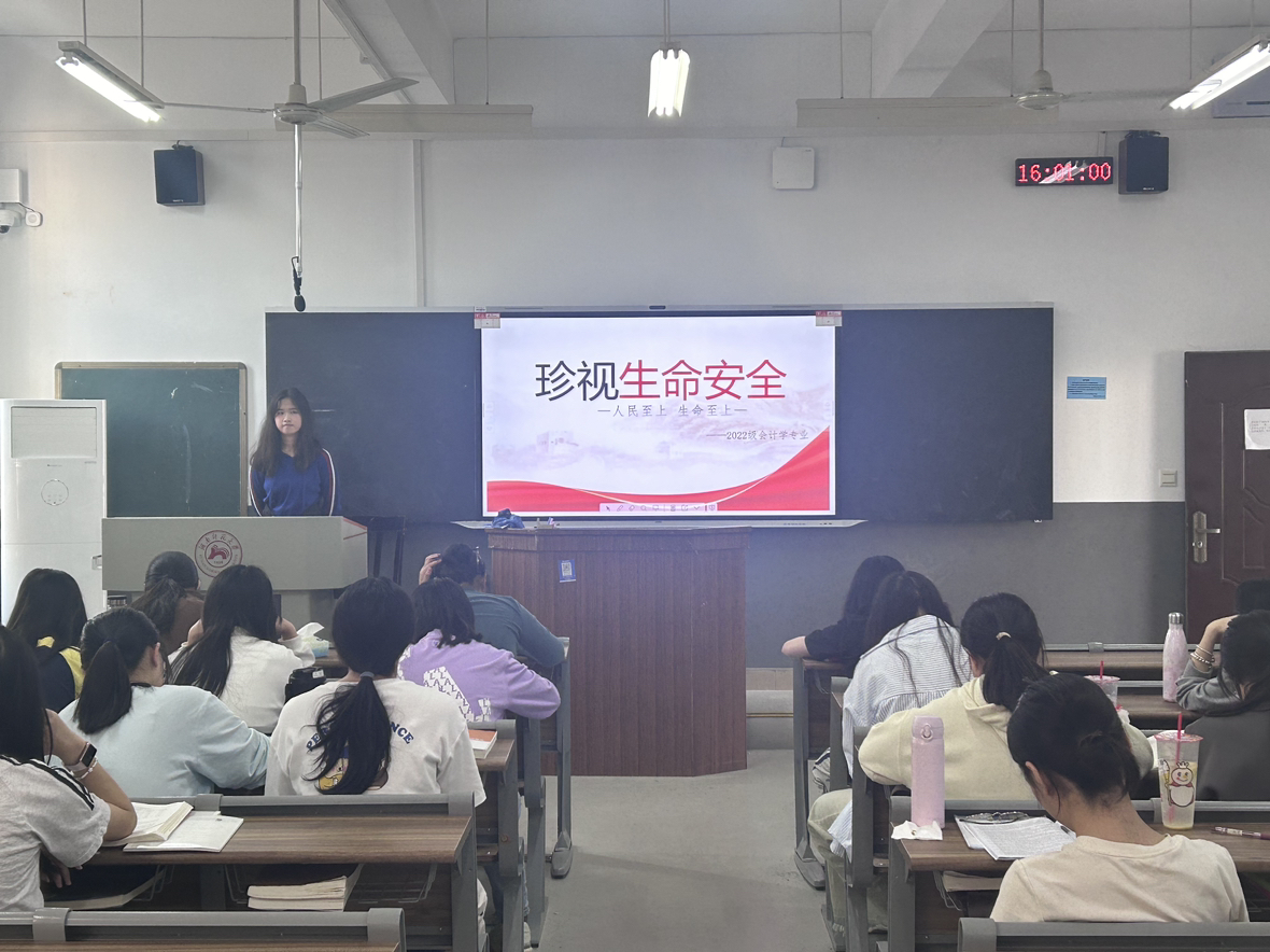 (记者 李伊佳 粟思瑾 刘媛媛)11月13日下午,公司经管系2022级会计学专业于树达楼404教室开展了以“珍视生命安全”为主题的团日活动。活动由团支部书记邹韵霖主持。