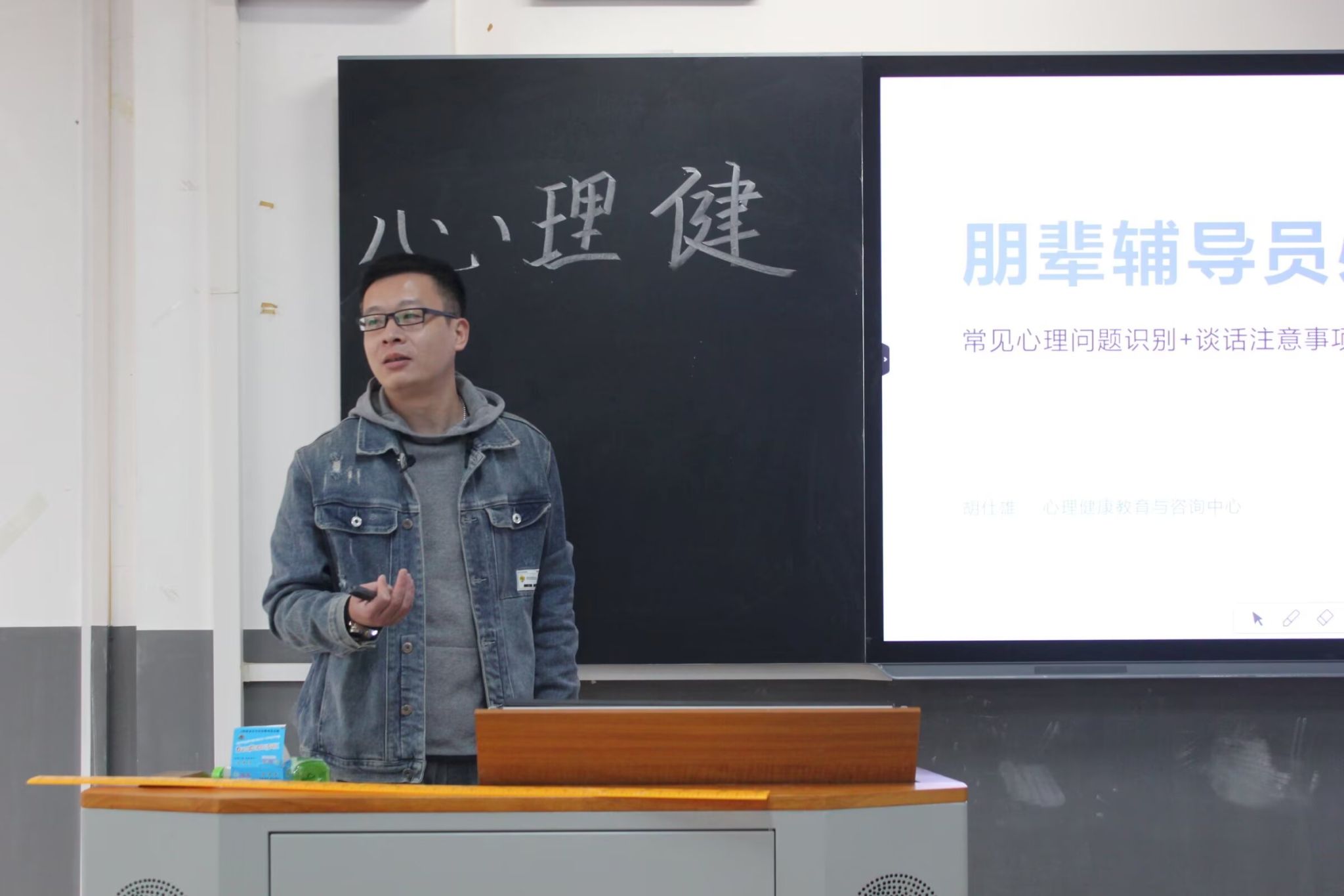 (通讯员 许海微 胡超凡 洪鹏志)11月21日中午,公司第十四期先锋团校教师教育系分校在树达楼216教室开展以“心理健康教育”为主题的第二次岗位培训课程。心理健康教育与心理咨询中心主任胡仕雄担任课程主讲人。
