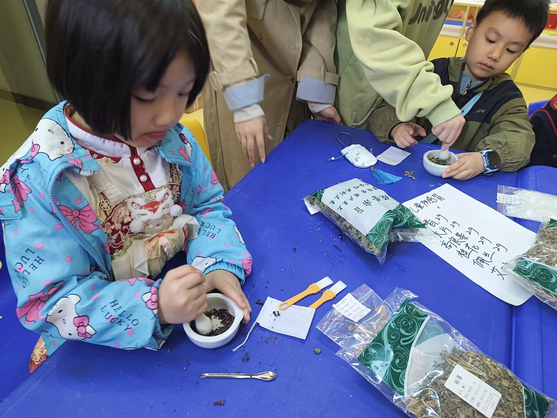 在志愿者的悉心指导下,小朋友们学会挑选中草药的技巧,并了解草药的特定属性和认识草药在传统医学中的应用,不仅掌握了制作中草药香囊的技能,还对中草药产生了浓厚的兴趣,学习了一些传统医学知识。