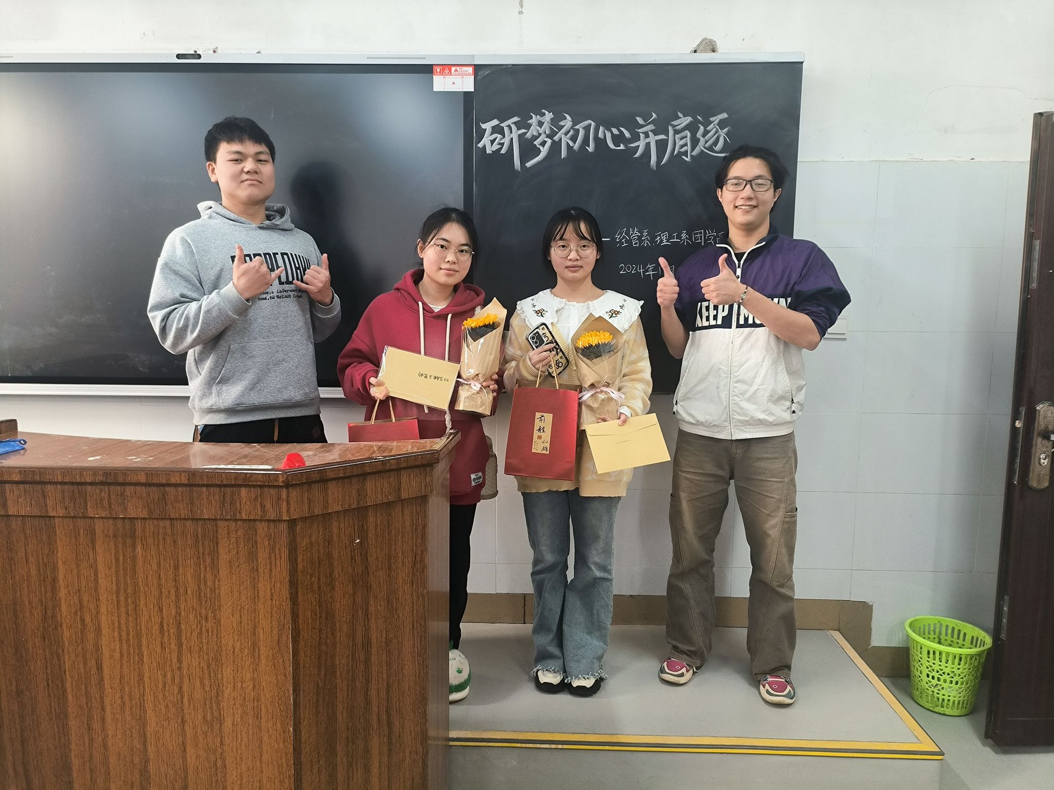 (通讯员 刘媛媛 刘艺杰)11月29日下午,公司经管系、理工系于树达楼109教室开展以“微光烬明照学途,研梦初心并肩逐”为主题的考研送温暖活动。活动由经管系、理工系团总支办公室、宣传部共同开展。