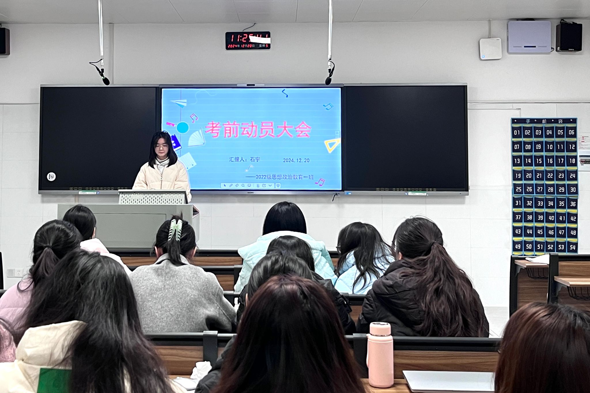 2023级数学与应用数学一班班长常玉好针对考试纪律进行强调。她表示,诚信是为人之本,也是考试之基。考试不仅是对知识的检验,更是对人格的考验。她希望,同学们可以制定详细的复习计划,合理分配时间,做到劳逸结合,避免疲劳备考。