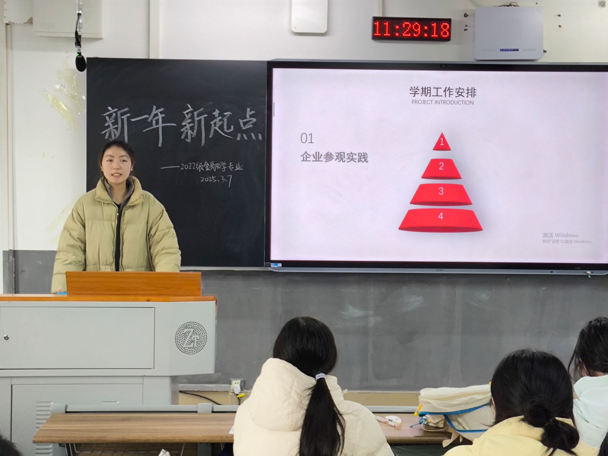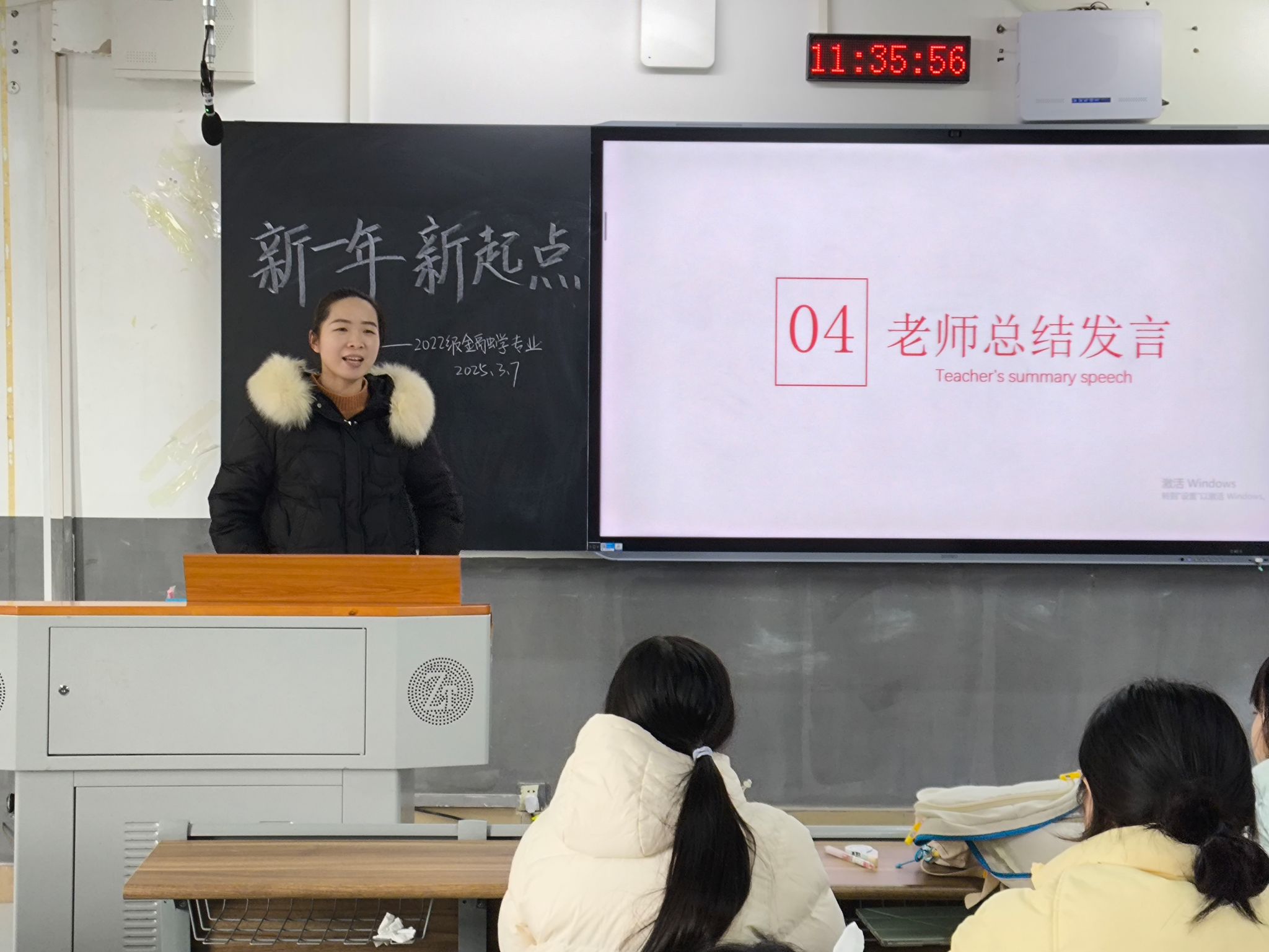 王贞作总结发言。她强调,步入新学期,同学们要扎实专业技能,根据自身实际情况做好科学定位,规划好路线,为将来考研、考公和就业打下坚实基础。她希望,同学们能够在增强本领才干,在锐意进取中提高专业素养,以更加饱满的精神状态迎接新机遇、新挑战,在属于自己的新征程上踔厉奋发,勇毅前行。