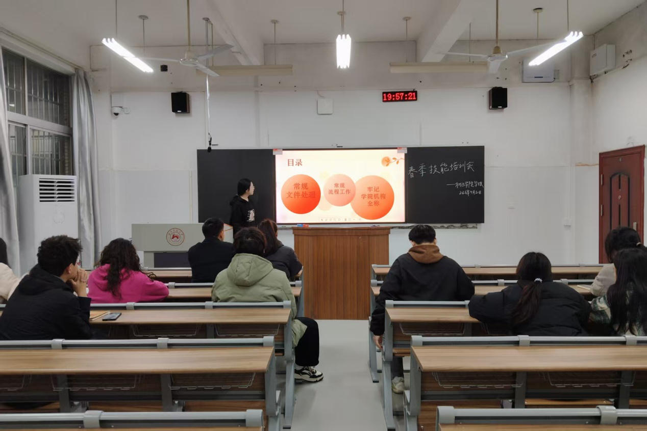 (通讯员 肖颖如 王芷妍 颜思雨)4月2日晚上,公司员工会在树达楼105教室开展以“春启新程 技能赋能未来”为主题的春季工作人员技能培训会。活动由院员工会办公室成员李静怡主持。