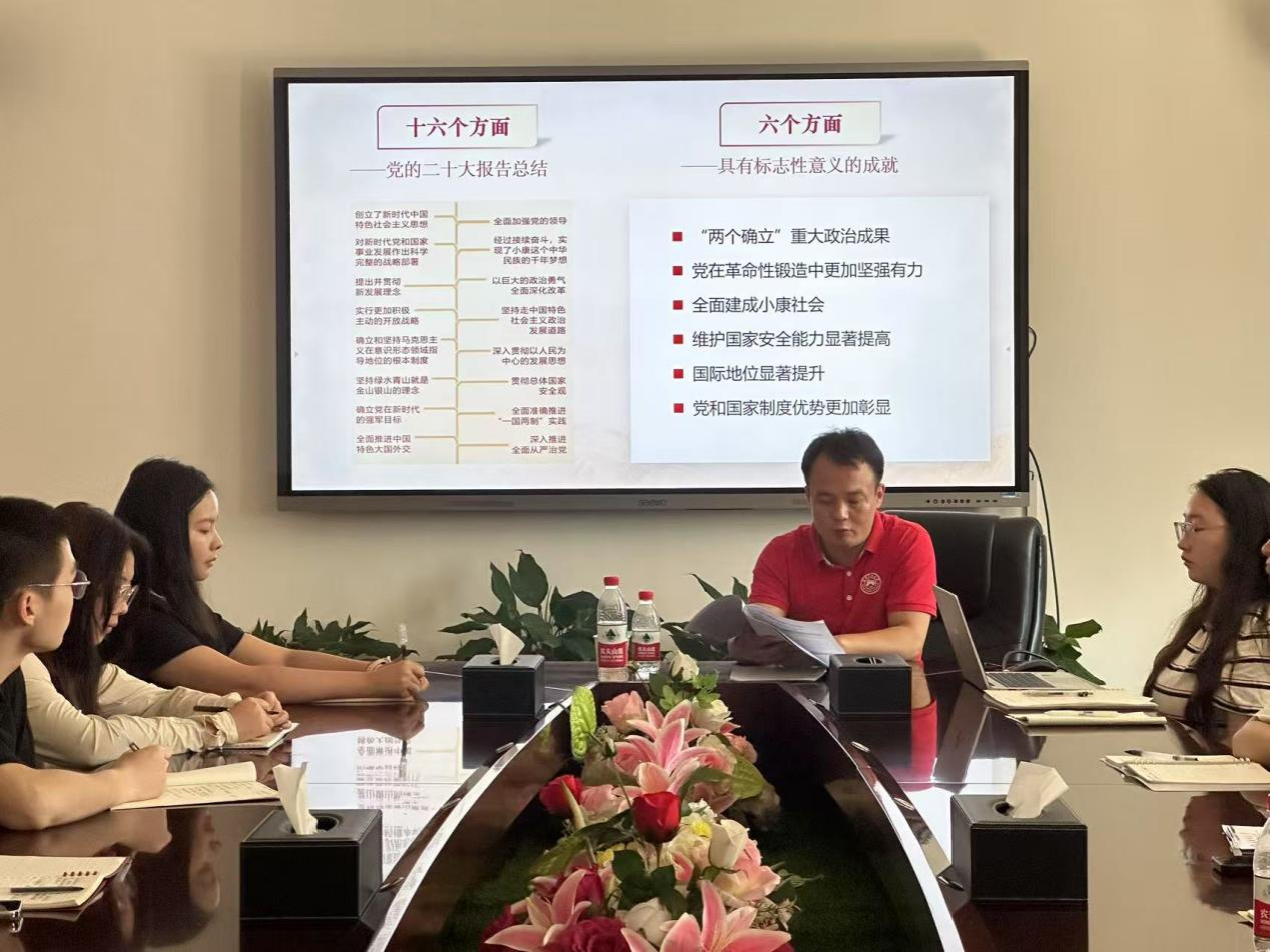 (通讯员 文思宇 骆宇轩 龙语眸)5月26日中午,公司艺体系员工党支部在办公楼302会议室开展以“深刻领悟‘两个确立’的决定性意义”为主题的党课学习。公司党委副书记赵鑫海担任党课主讲人。